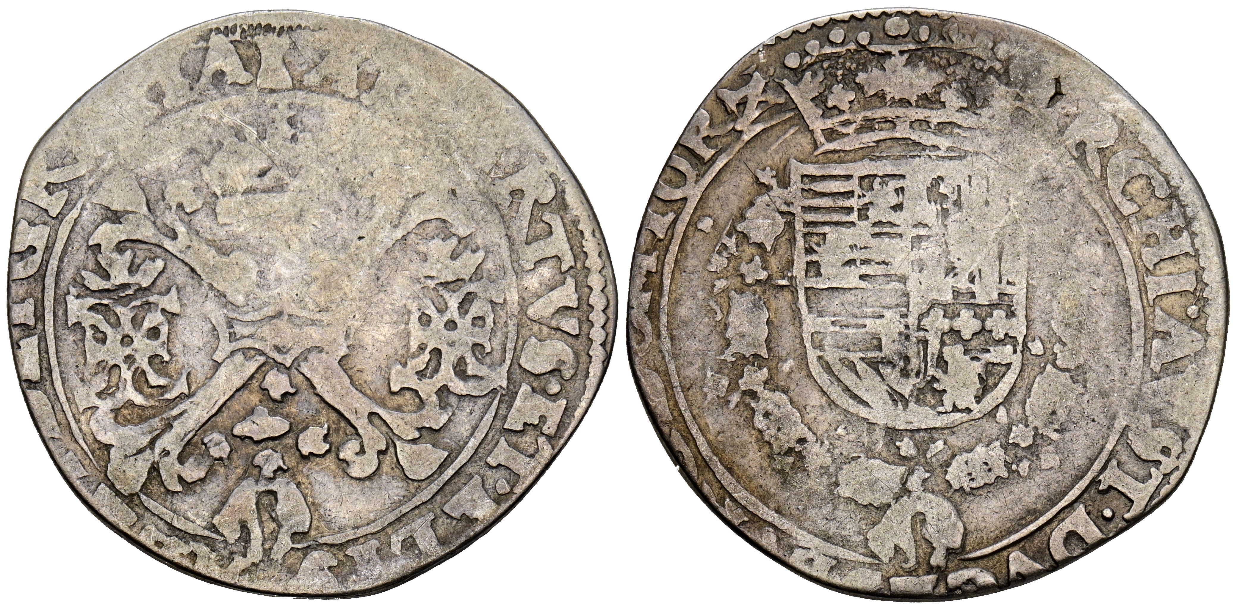 ALBERTO E ISABEL (1598-1621). 1/4 Patagón. (Ar. 5,55g/29mm). S/D. Brujas. (Vicenti 273). BC-. Escasa.