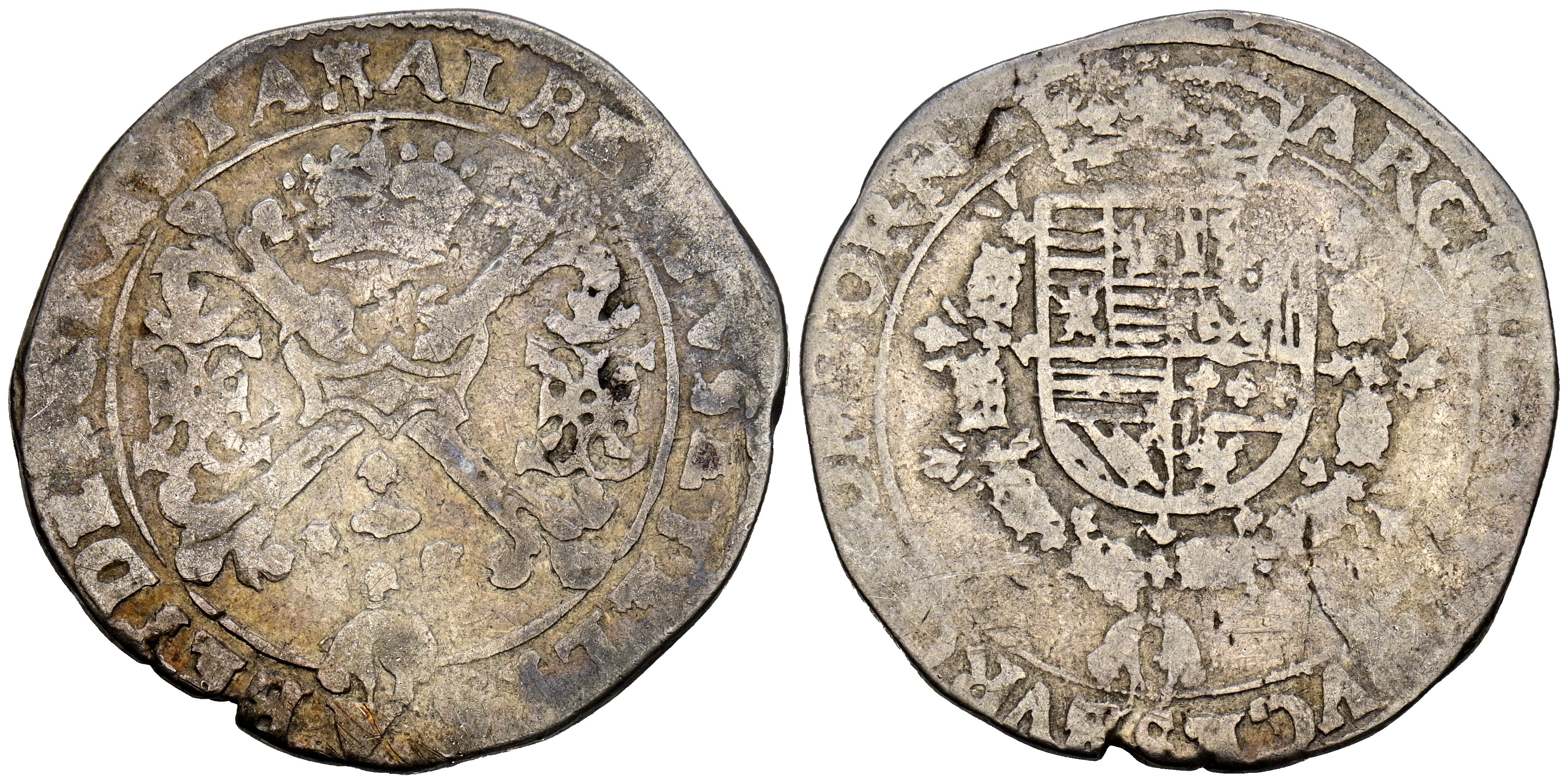ALBERTO E ISABEL (1598-1621). 1/4 Patagón. (Ar. 6,56g/30mm). S/D. Tournai. (Vicenti 273). BC+. Escaso.