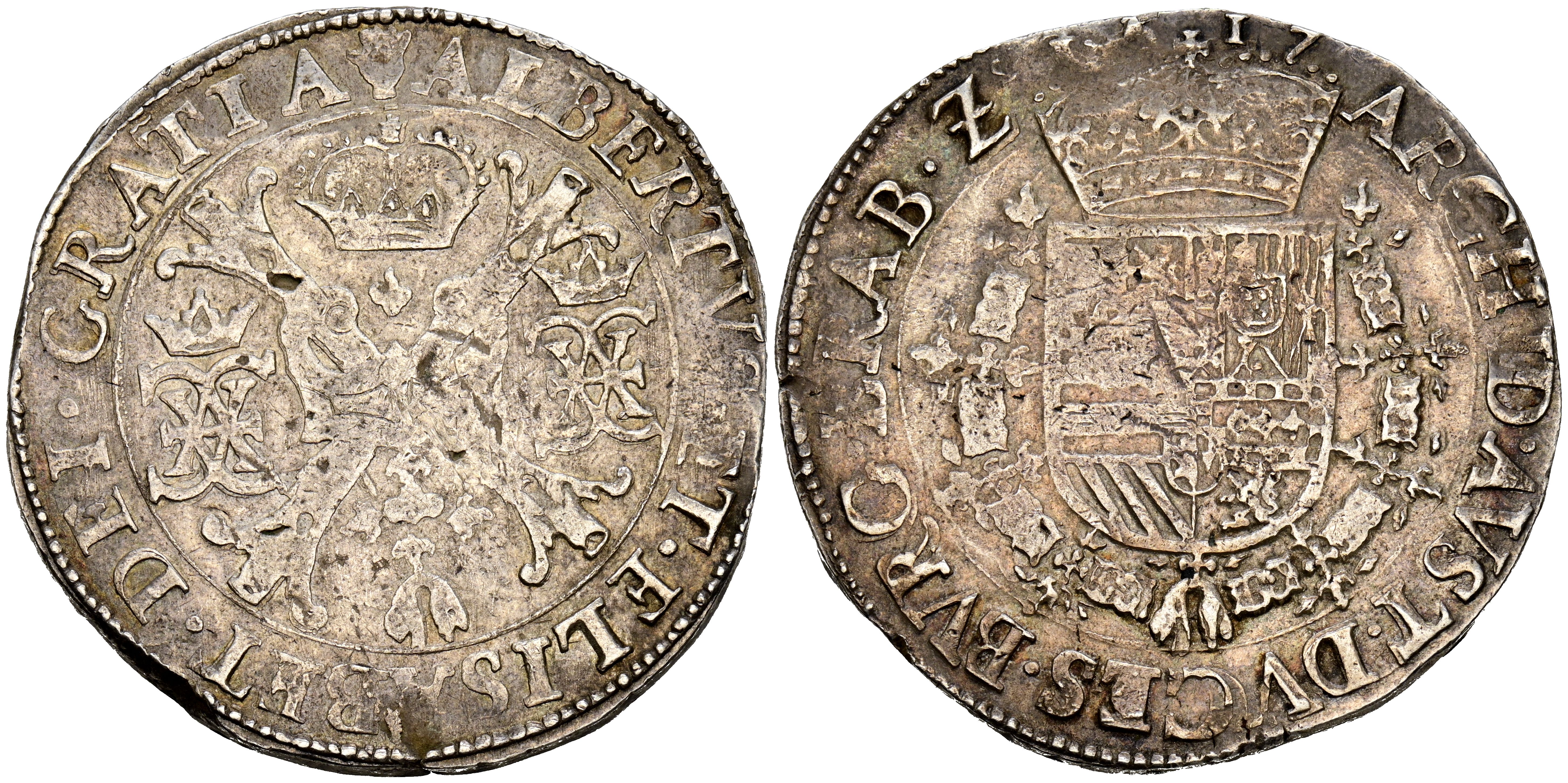 ALBERTO E ISABEL (1598-1621). 1 Patagón. (Ar. 27,89/42mm). 1617. Amberes. (Vicenti 349). MBC. Bonita pátina