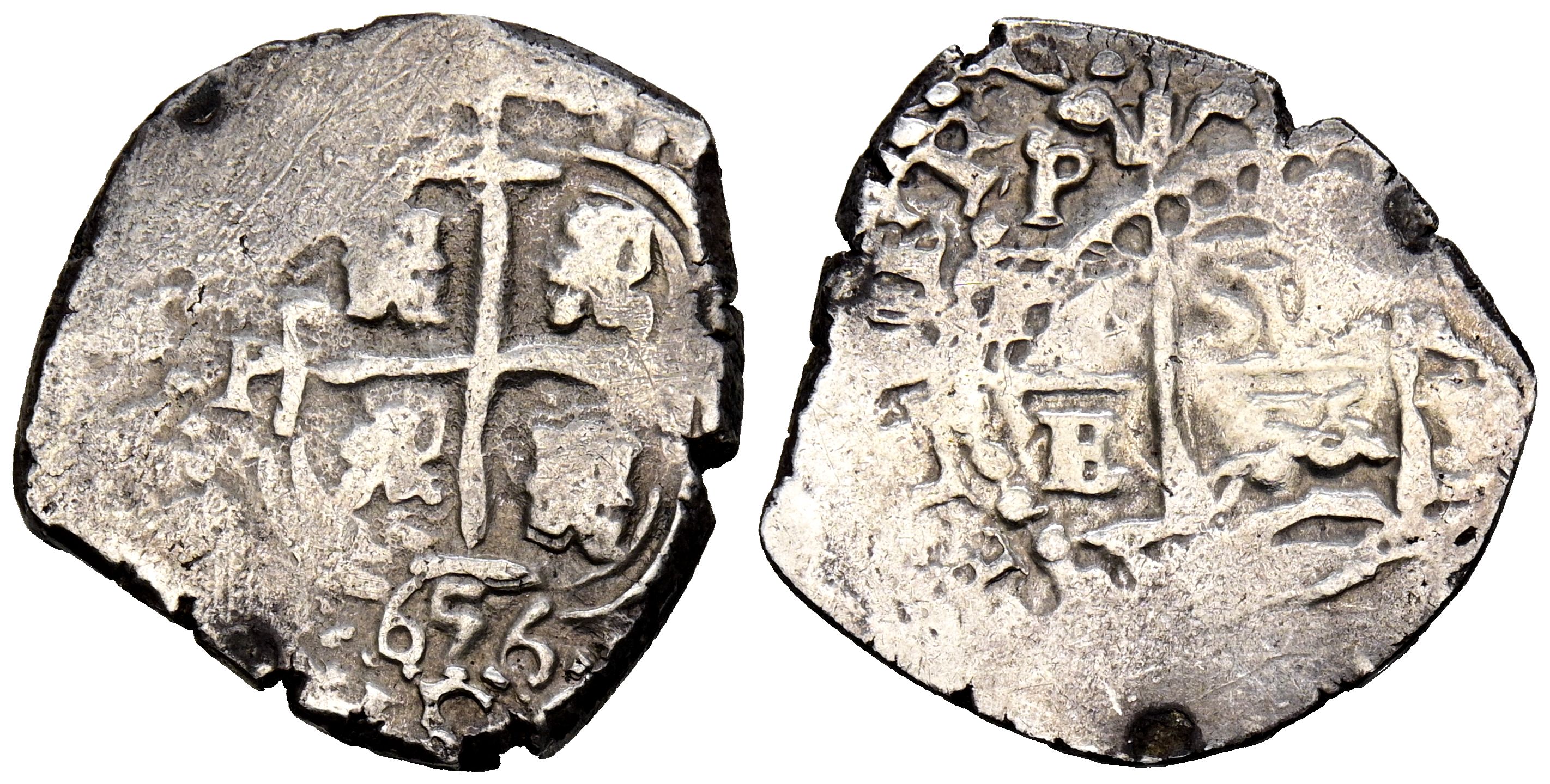 FELIPE IV (1621-1665). 1 Real. (Ar. 2,57g/19mm). 1656. Potosí E. (Cal-2019-758). Doble fecha. MBC.