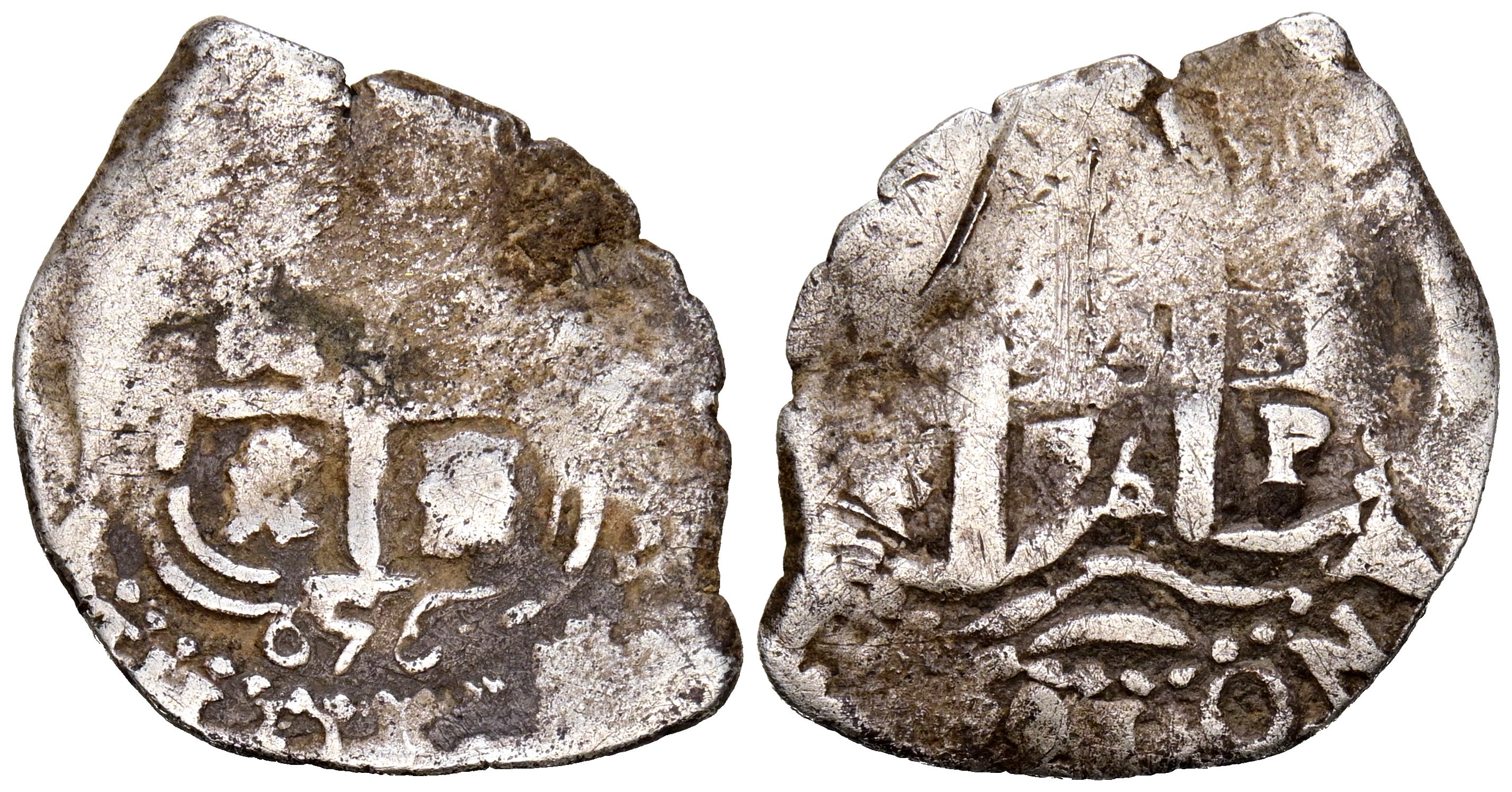 FELIPE IV (1621-1665). 1 Real. (Ar. 2,57g/19mm). 1656. Potosí E. (Cal-2019-758). Triple fecha, la de la leyenda del reverso parcialmente visible. BC+.
