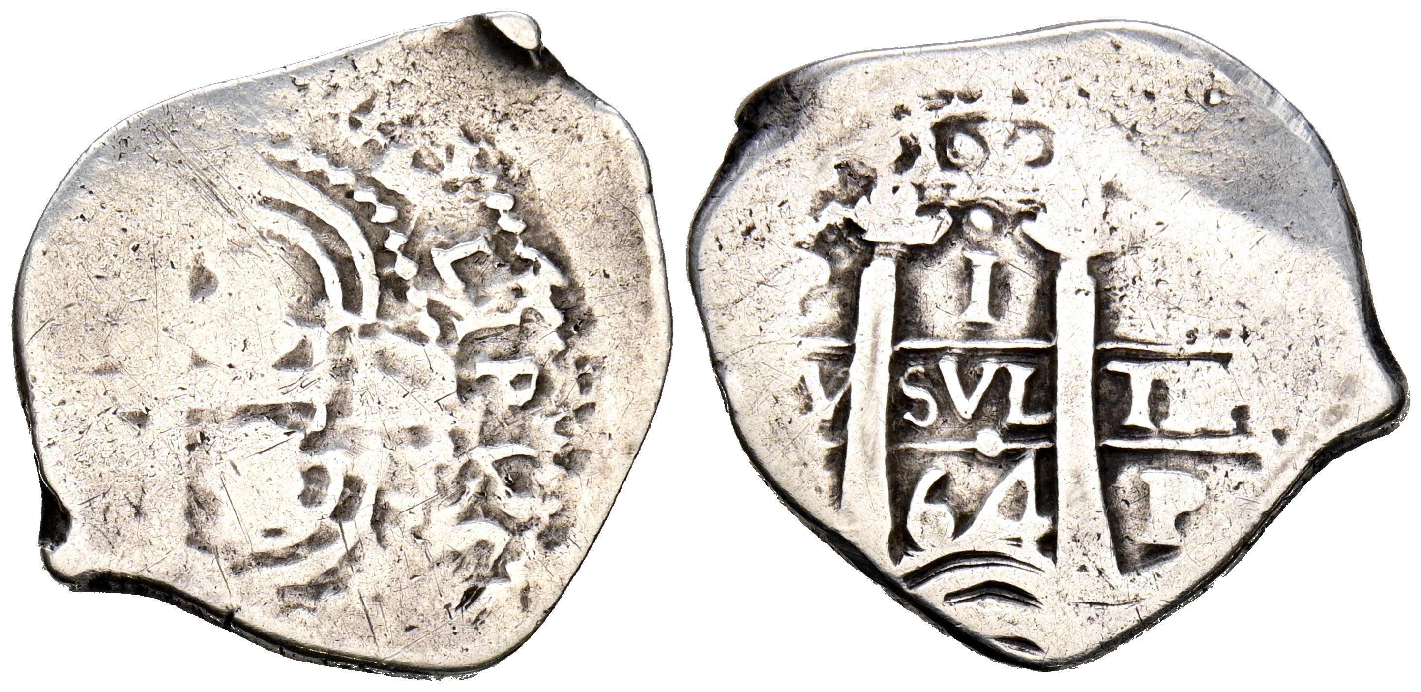 FELIPE IV (1621-1665). 1 Real (Ar. 2,64g/21mm). 1664. Potosí E. (Cal-2019-766). BC/BC+. Visible el nombre del rey.