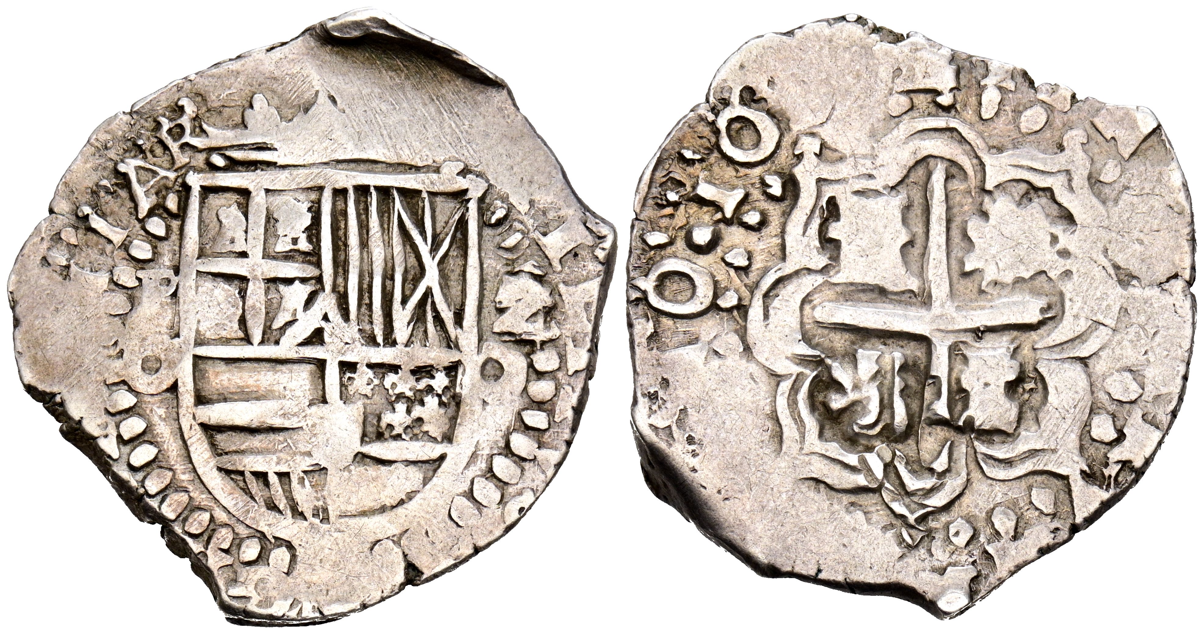 FELIPE IV (1621-1665). 2 Reales. (Ar. 6,73g/29mm). Fecha no visible (1649-1650). Potosí o-o. (Juan Rodríguez de Rodas). (Cal-2019-Tipo 239). MBC+. Muy rara.