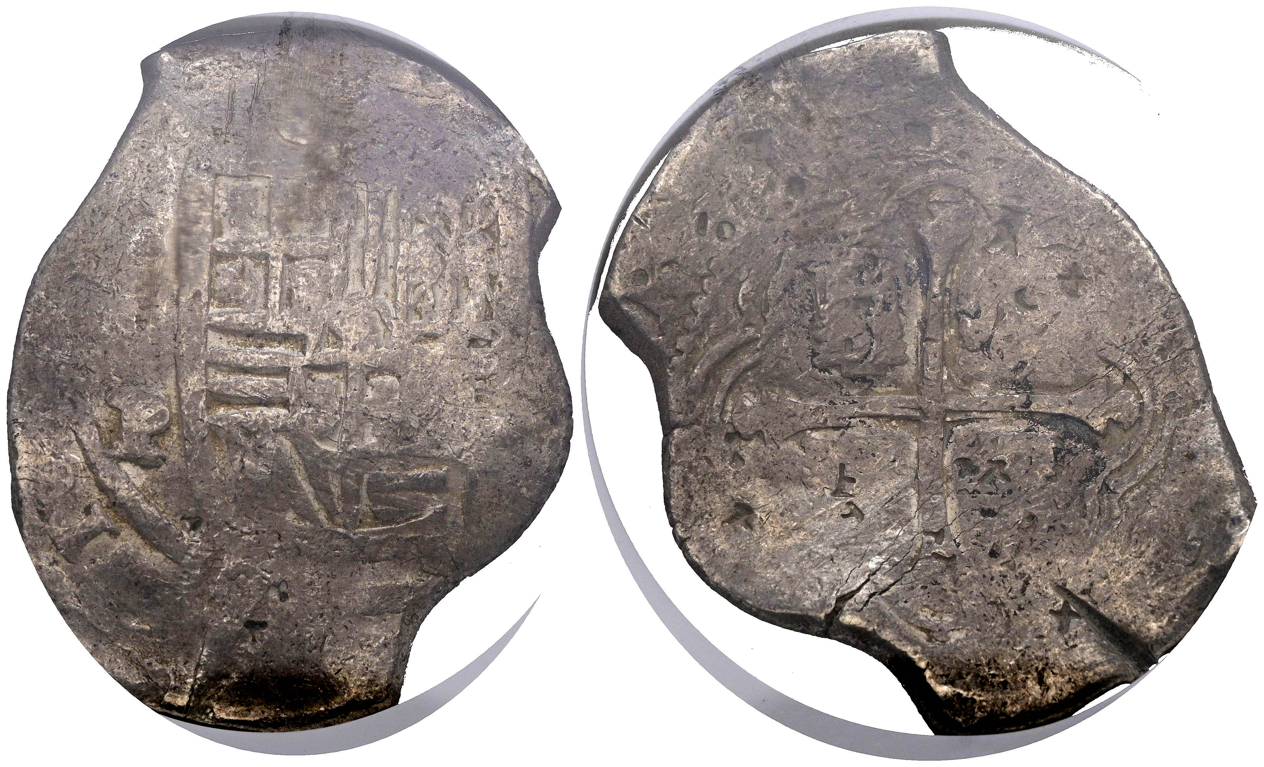 FELIPE IV (1621-1665). 8 Reales. (Ar. 27,23g/43mm). Fecha no visible. México P. (Cal-2019-Tipo 319). Encapsulado por NGC VF Details, Damaged, Chopmarked.