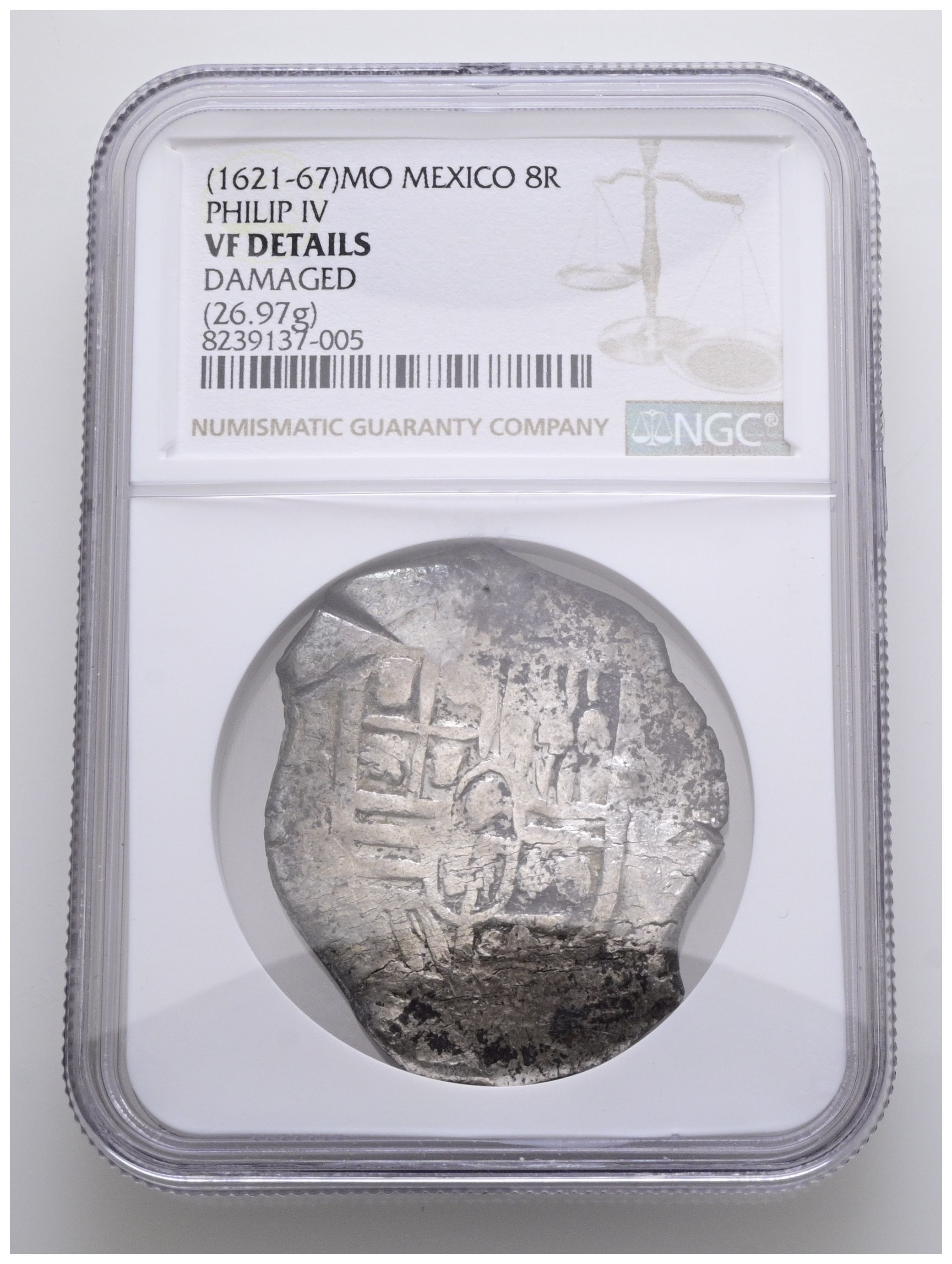 FELIPE IV (1621-1665). 8 Reales. (Ar. 26,97g/39mm). Fecha no visible. México, ensayador no visible. (Cal-2019-Tipo 319). Encapsulado por NGC VF Details, Damaged.