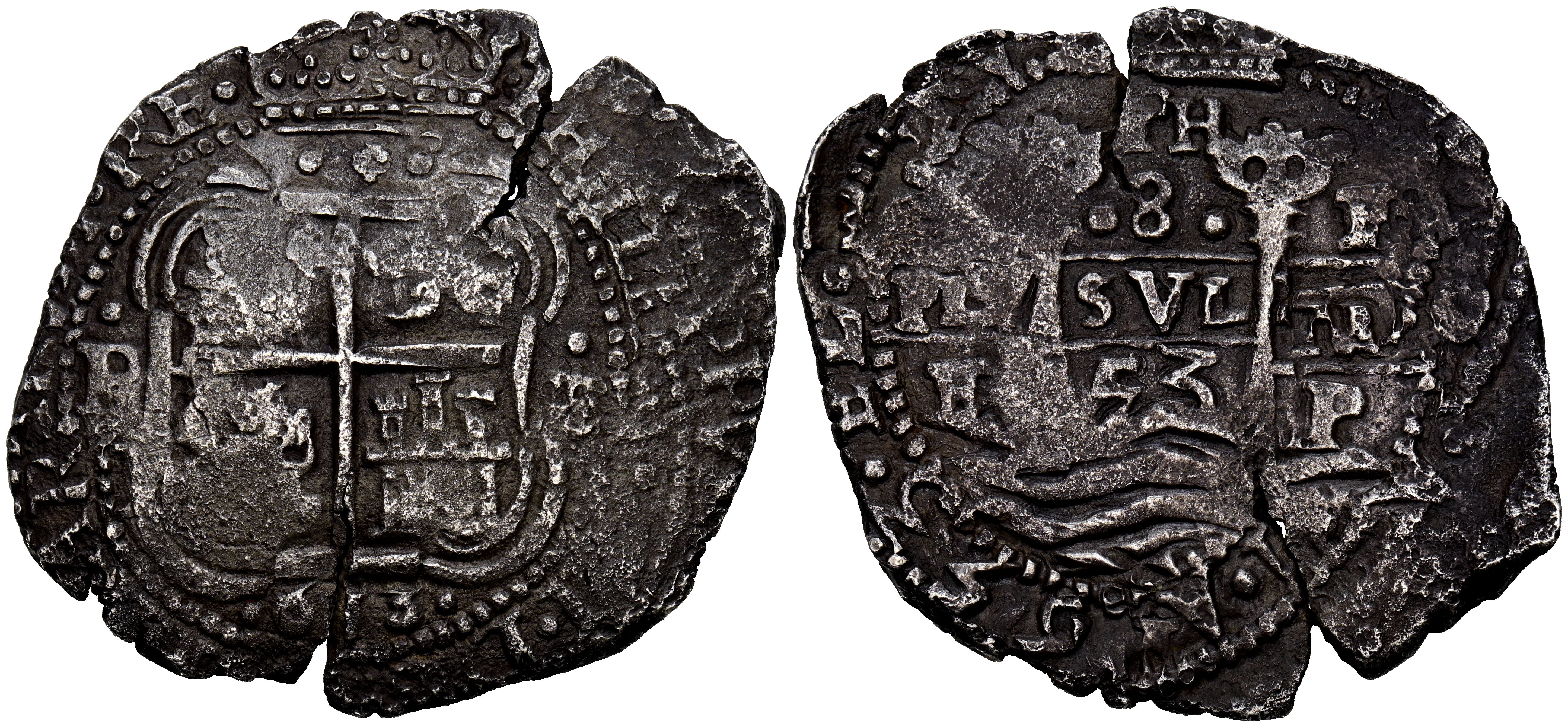 FELIPE IV (1621-1665). 8 Reales. (Ar. 25,56g/37mm). 1653. Potosí E (Cal-2019-1503) PH bajo la corona del reverso. MBC. Oxidaciones. Escaso ejemlar
