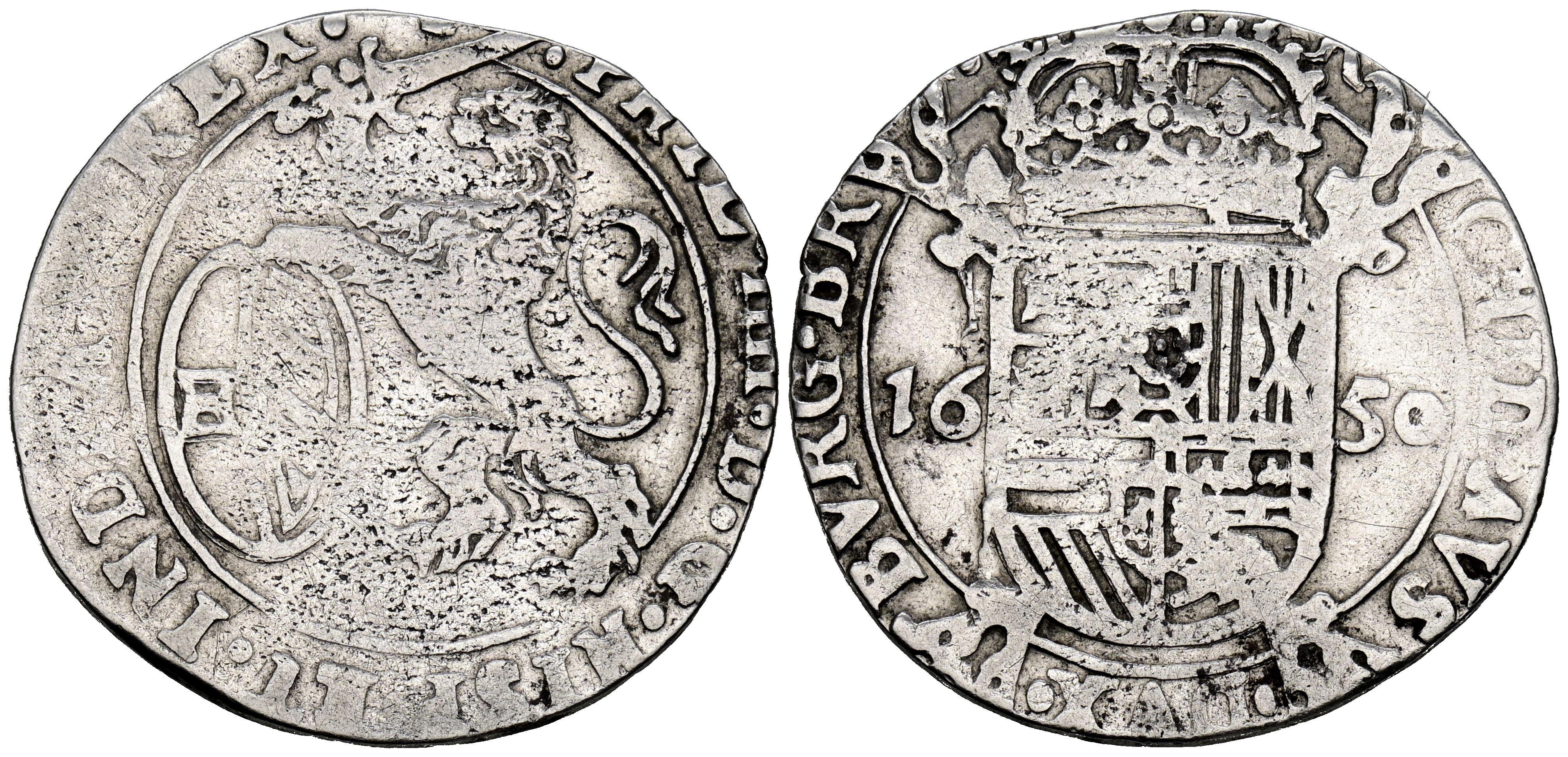 FELIPE IV (1621-1665). 1 Escalín. (Ar. 5,12g/26mm). 1650. Brabante. (Vicenti Tipo 107). MBC.