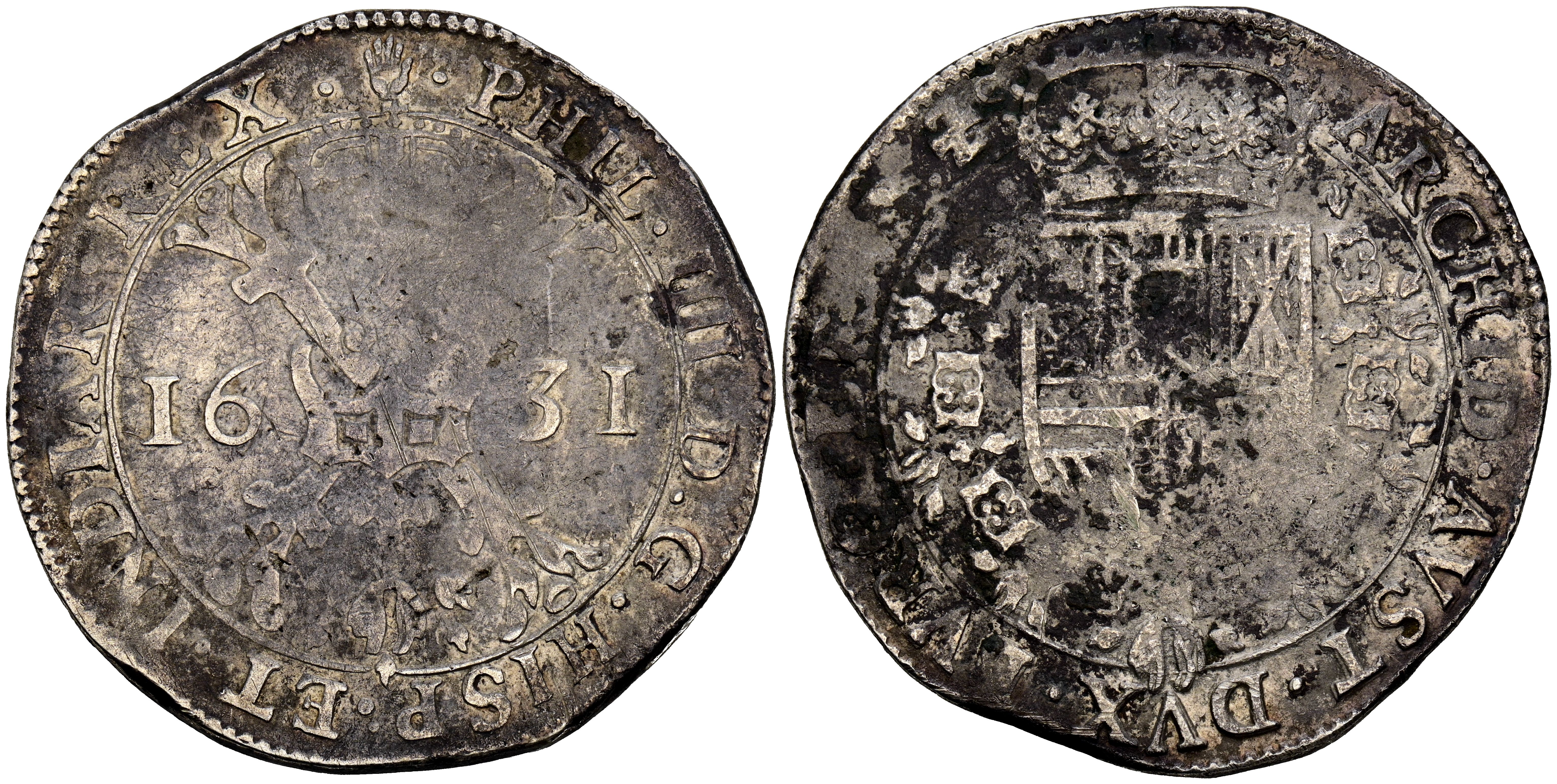 FELIPE IV (1621-1665). 1 Patagón. (Ar. 27,43g/43mm). 1631. Amberes. (Vicenti 937). MBC-.