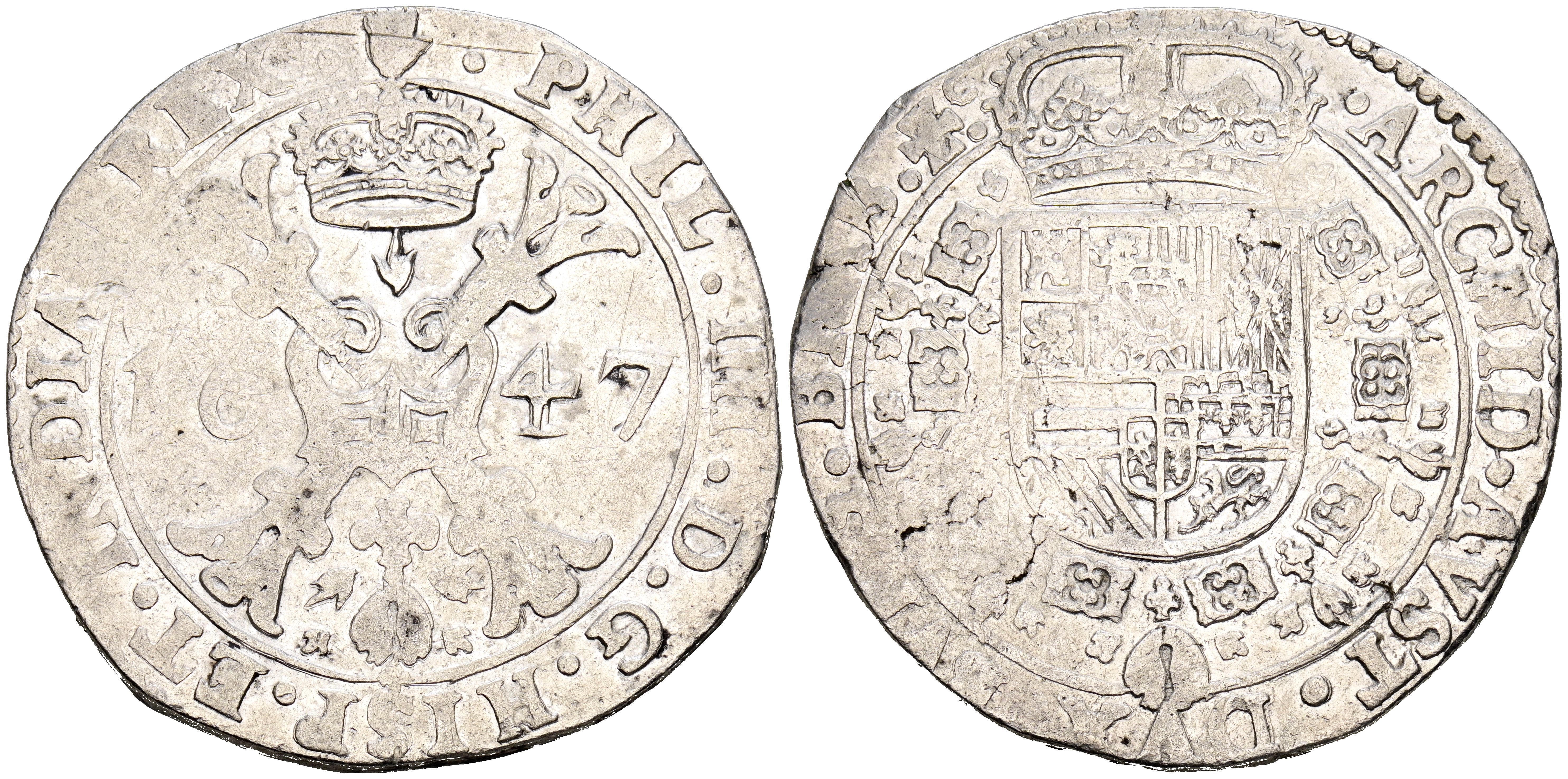 FELIPE IV (1621-1665). 1 Patagón. (Ar. 27,52g/42mm). 1647. Amberes. (Vicenti 950). MBC.