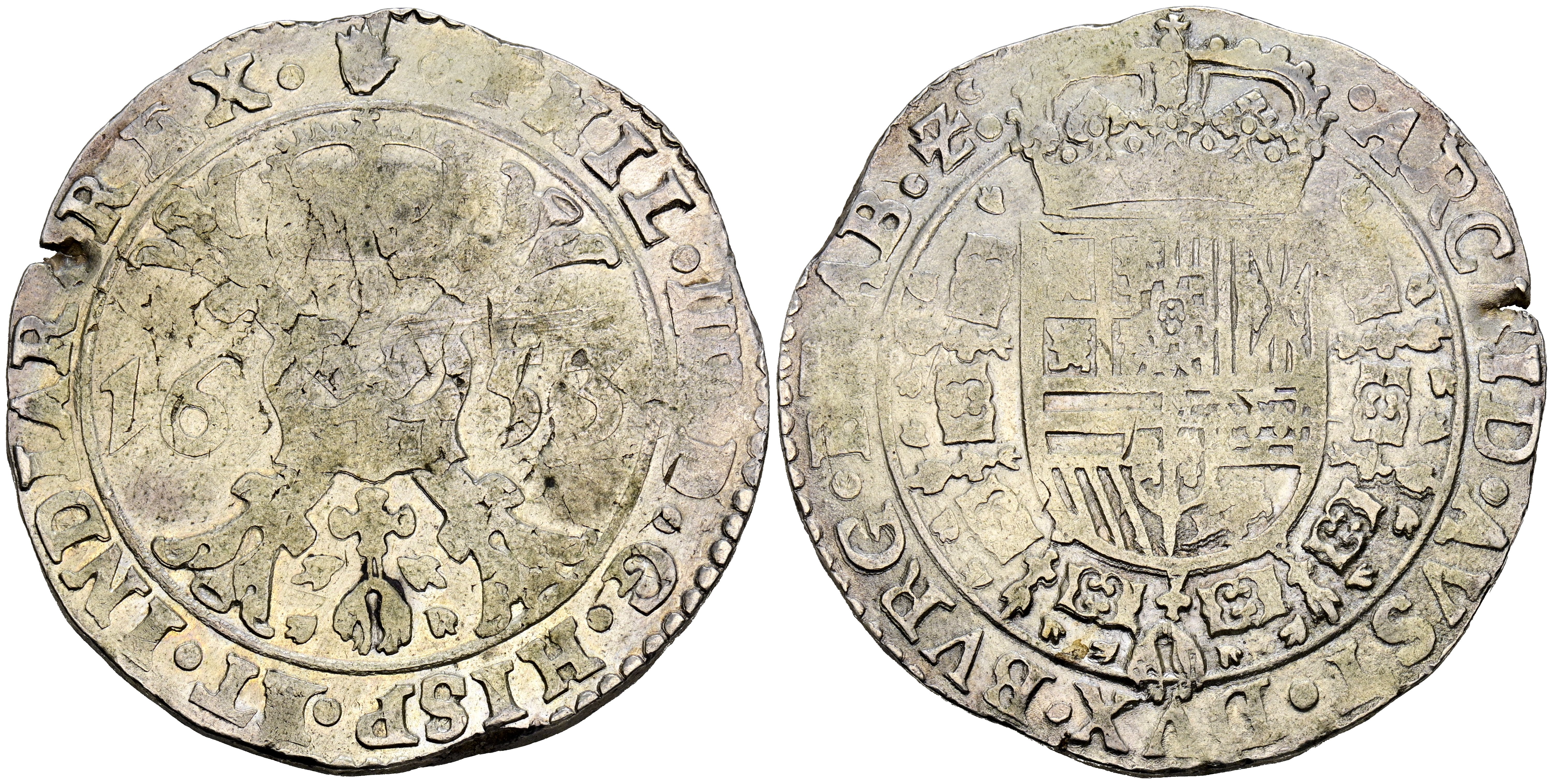 FELIPE IV (1621-1665). 1 Patagón. (Ar. 27,72 /42mm). 1653. Amberes. (Cal-2019-956). MBC+.