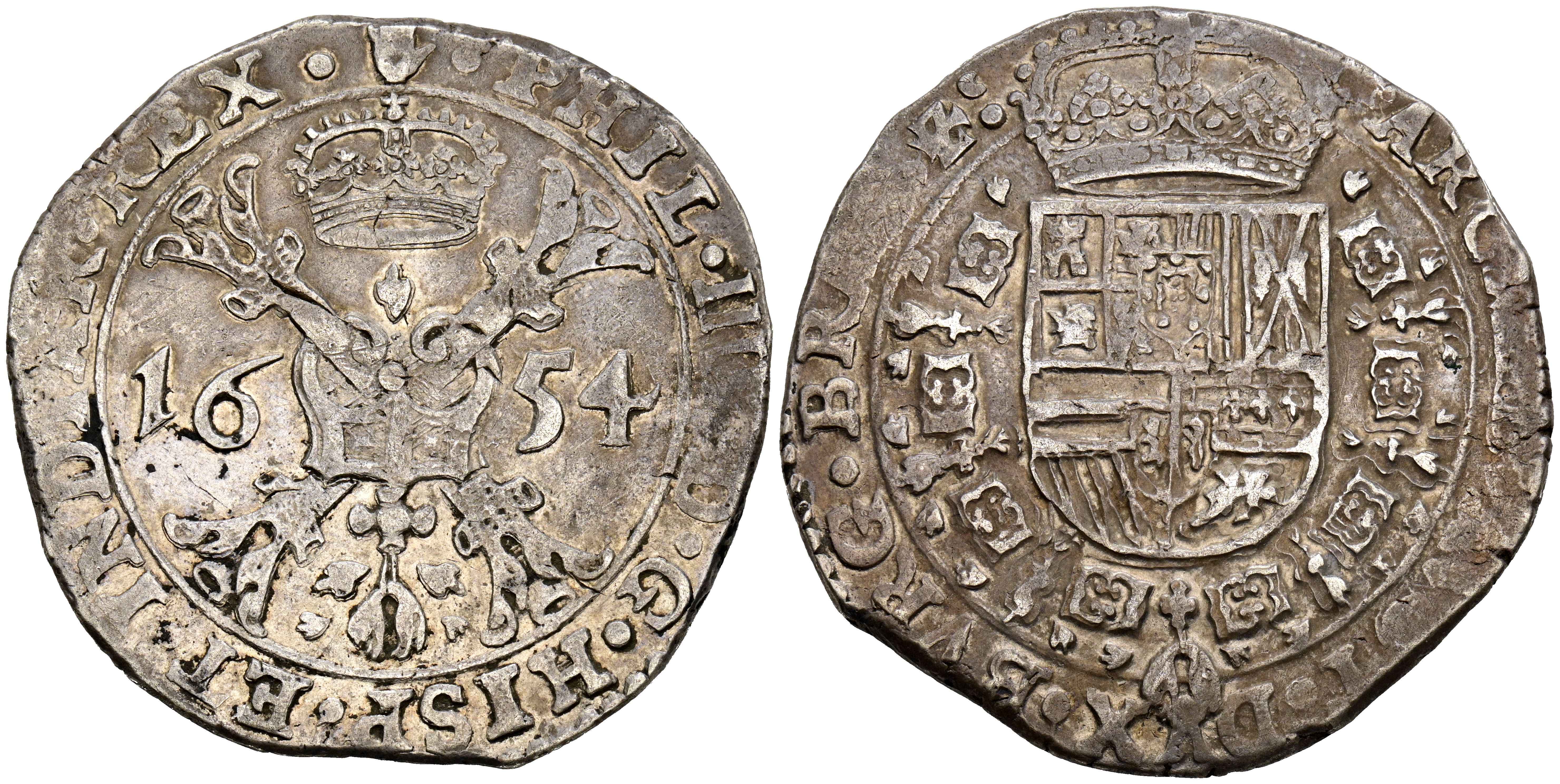 FELIPE IV (1621-1665). 1 Patagón. (Ar. 27,62g/42mm). 1654. Amberes. (Vicenti 957). MBC+. Preciosa pátina.