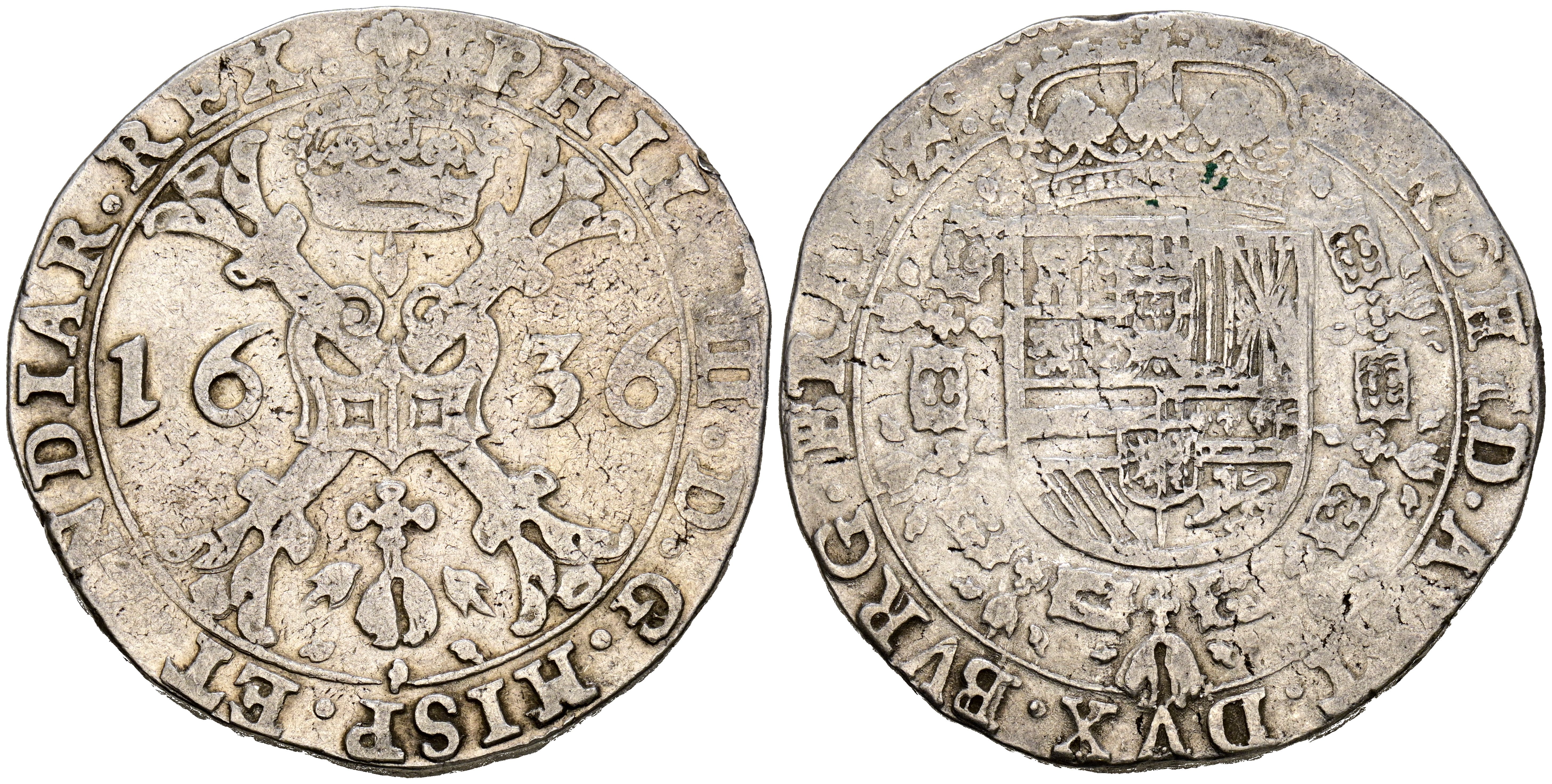FELIPE IV (1621-1665). 1 Patagón. (Ar. 28,01g/41mm). 1636. Bruselas. (Vicenti 1009). MBC.