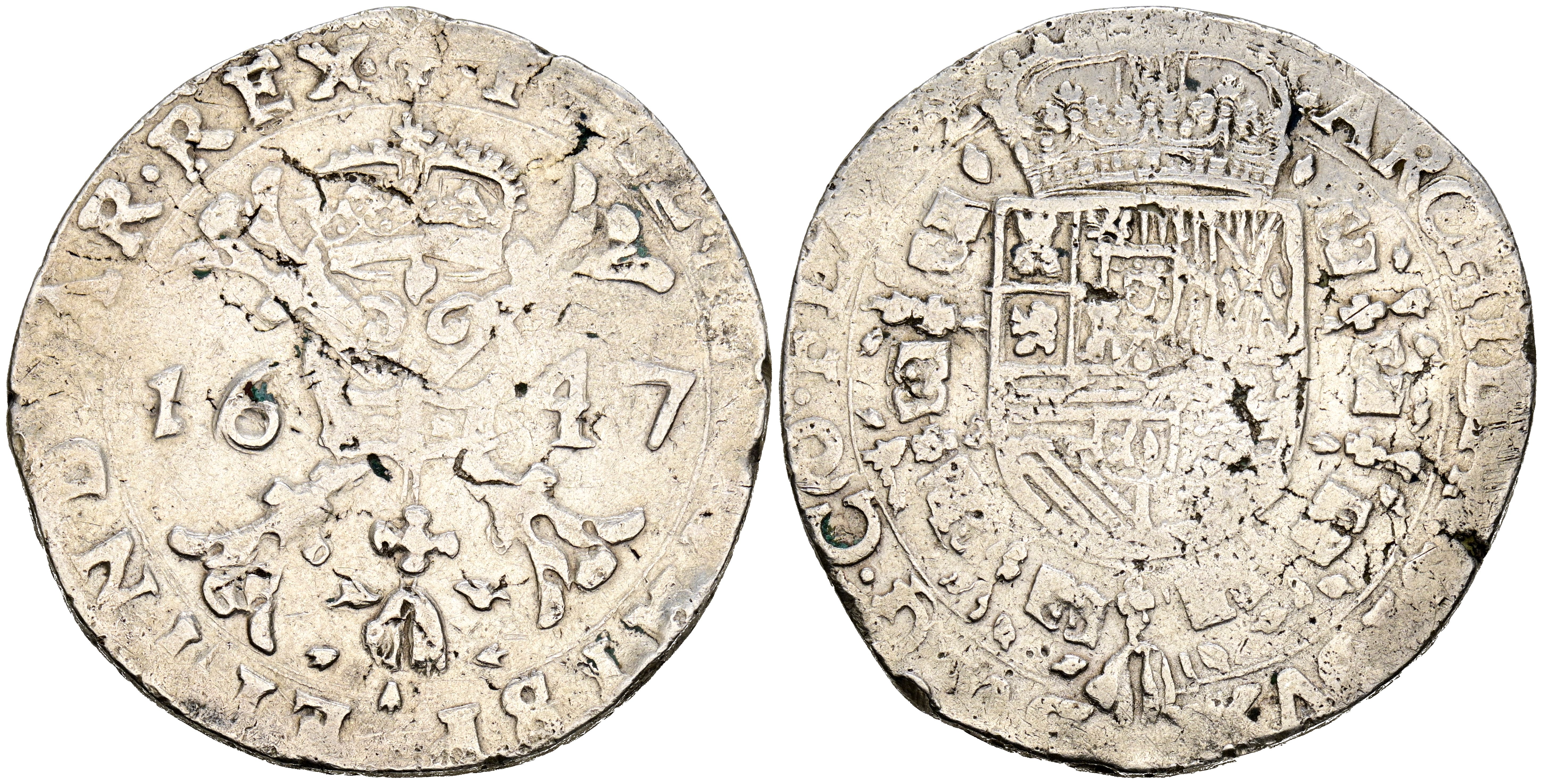 FELIPE IV (1621-1665). 1 Patagón. (Ar. 26,32g/42mm). 1647. Brujas. (Vicenti 1074). MBC-.
