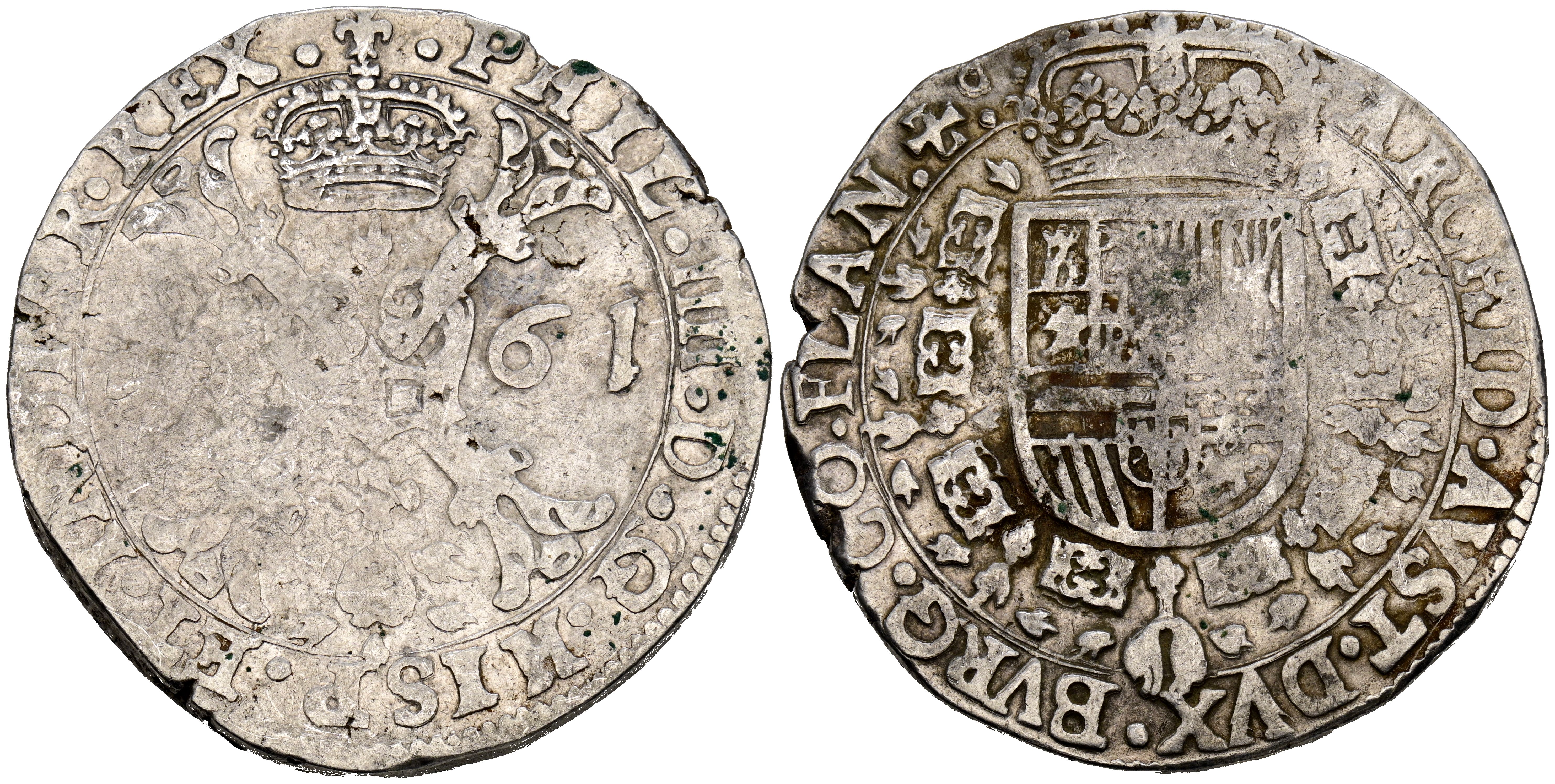 FELIPE IV (1621-1665). 1 Patagón. (Ar. 27,77g/42mm). 1661. Brujas. (Vicenti 1088). MBC-. Escaso.