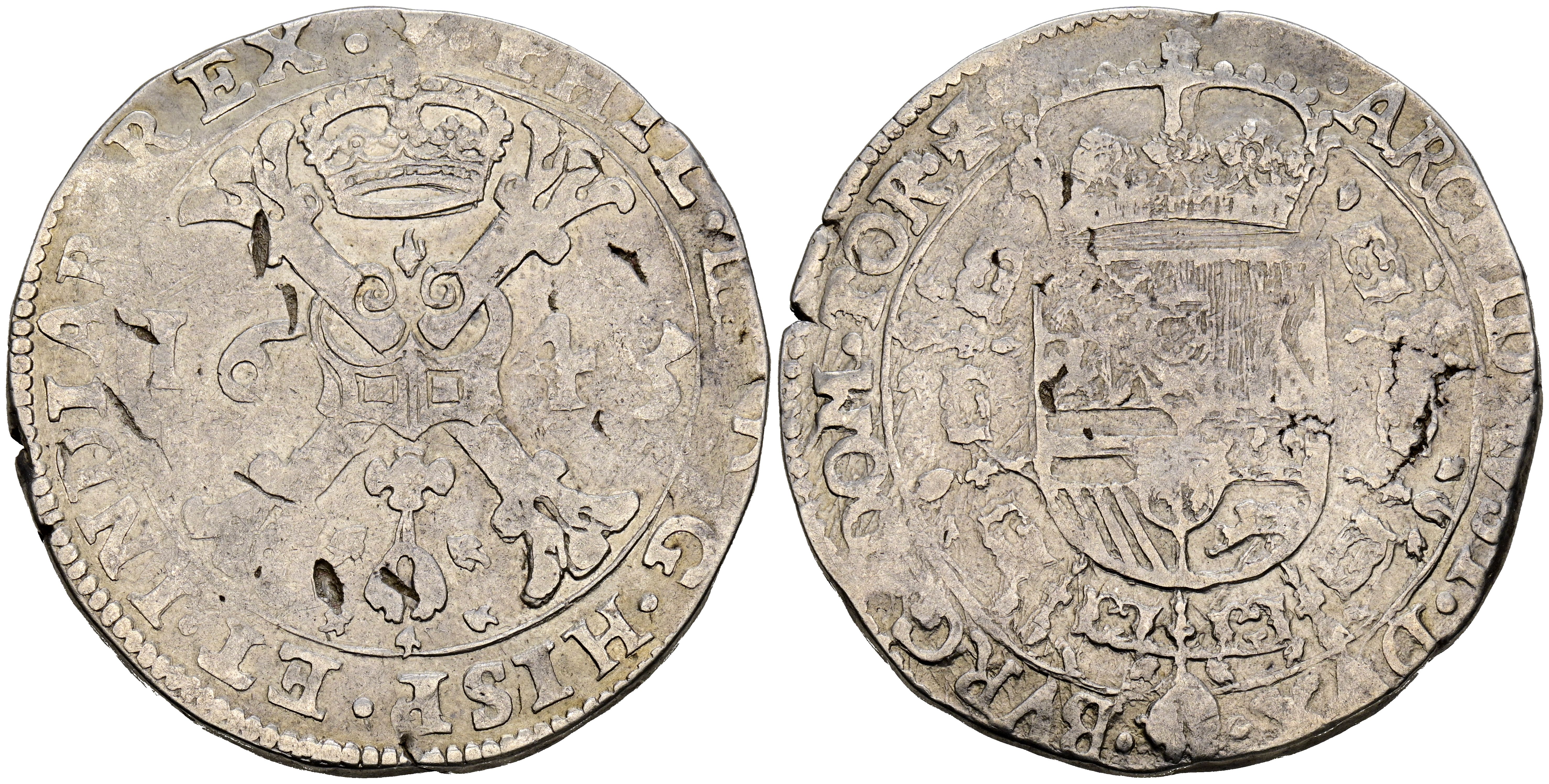 FELIPE IV (1621-1665). 1 Patagón. (Ar. 27,64g/42mm). 1643. Tournai. (Vicenti 1126). MBC. Escasa.