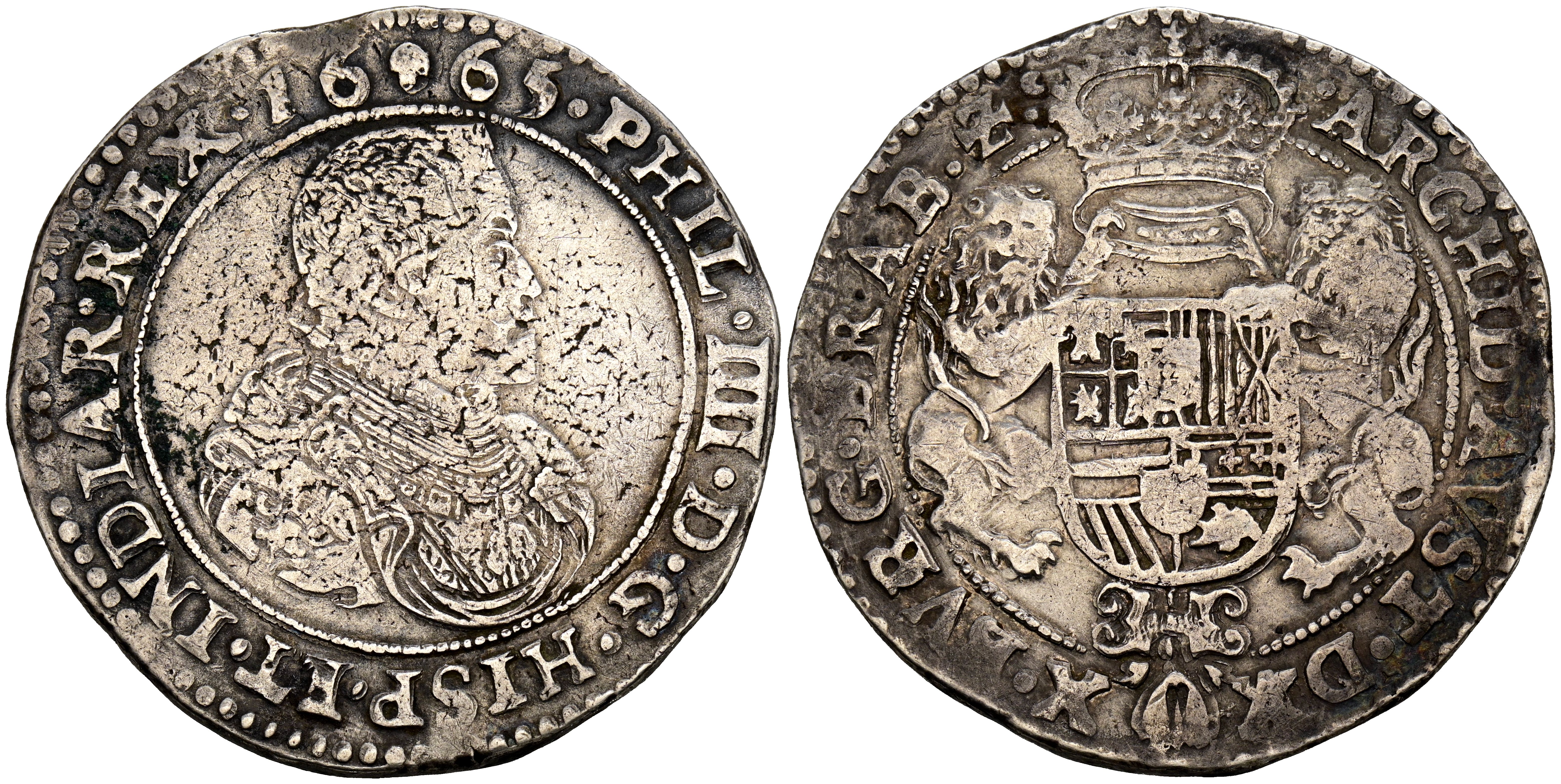 FELIPE IV (1621-1665). 1 Ducatón. (Ar. 32,54g/45mm). 1665. Bruselas. (Vicenti 1320). MBC.