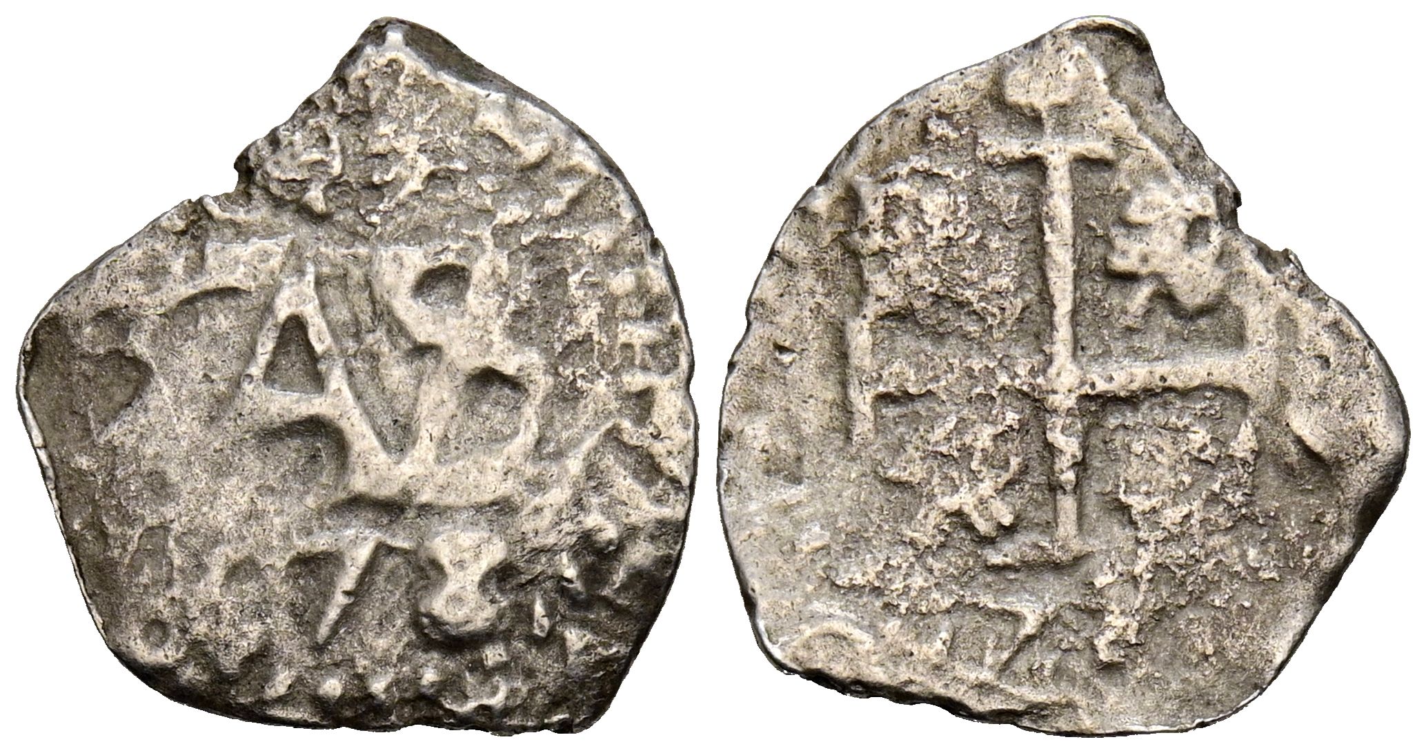 CARLOS II (1665-1700). 1/2 Real. (Ar. 1,11g/14mm). 1678/7. Potosí. (Cal-2019-167 var). BC+. Rara rectificación.