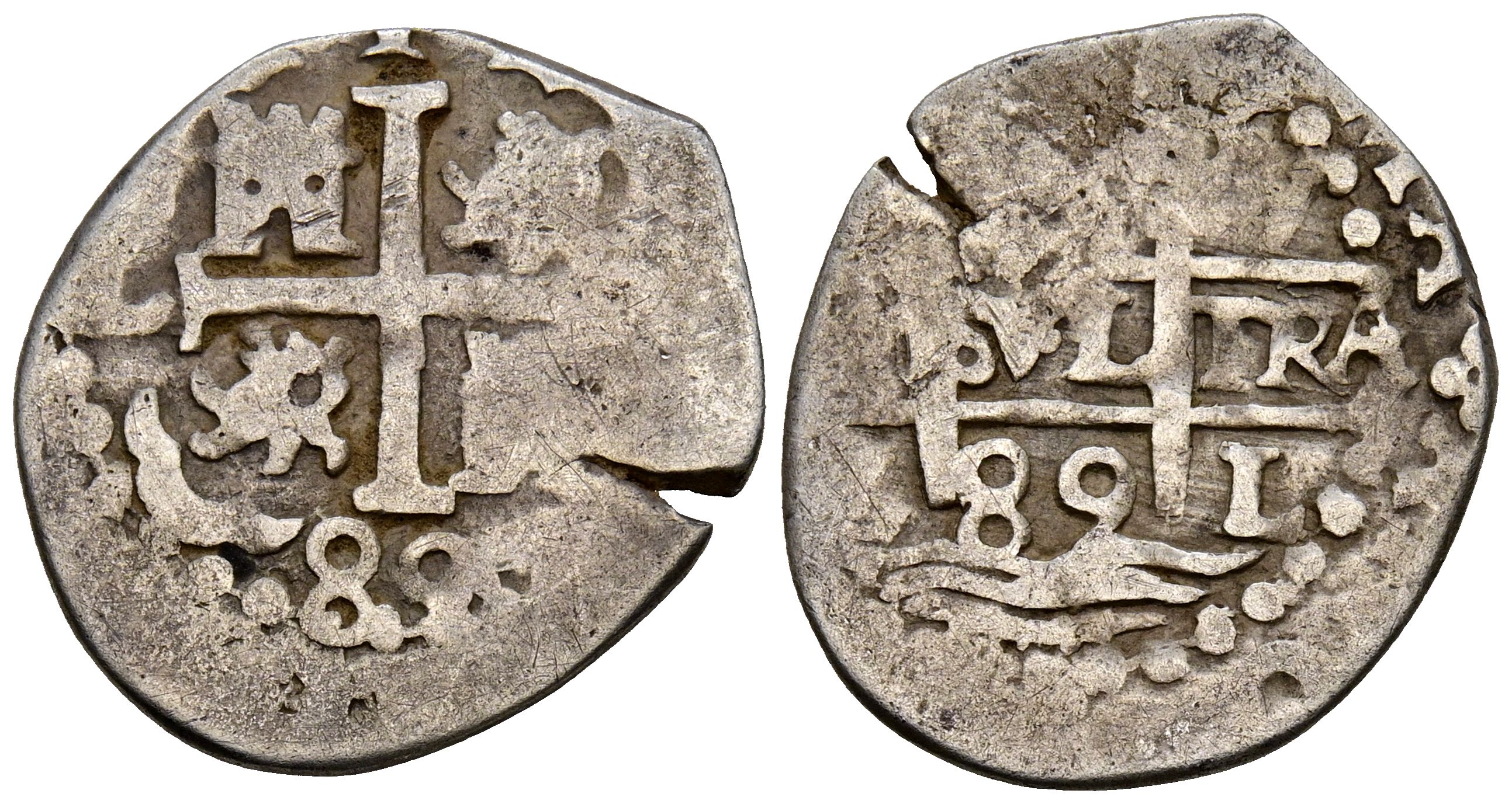 CARLOS II (1665-1700). 1 Real. (Ar. 2,01g/18mm). 1689. Lima V. (Cal-2019-220). Doble fecha visible. MBC-.