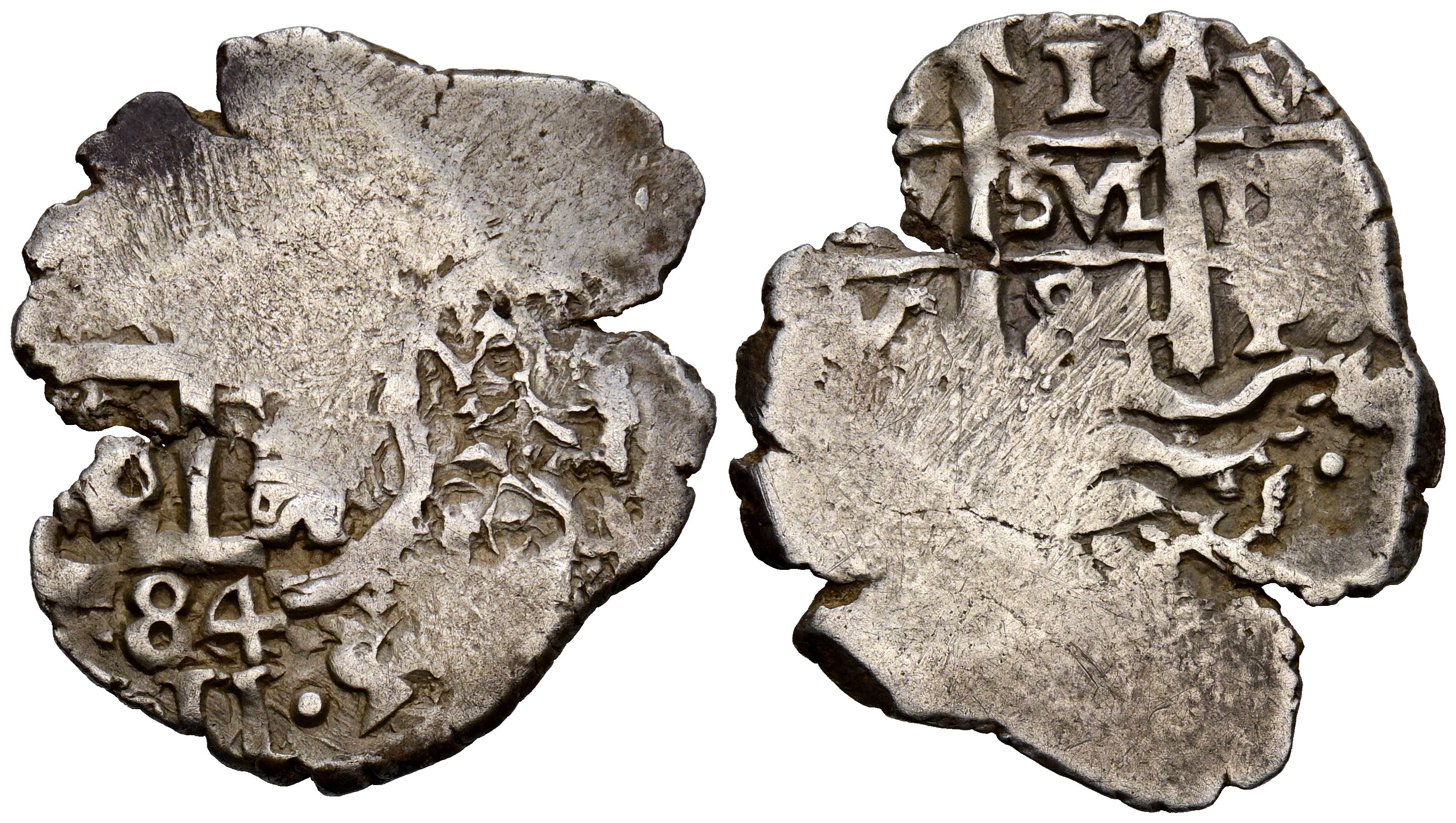 CARLOS II (1665-1700). 1 Real. (Ar. 3,64g/22mm). 1684. Potosí VR. (Cal-2019-277). Doble fecha visible. MBC-.