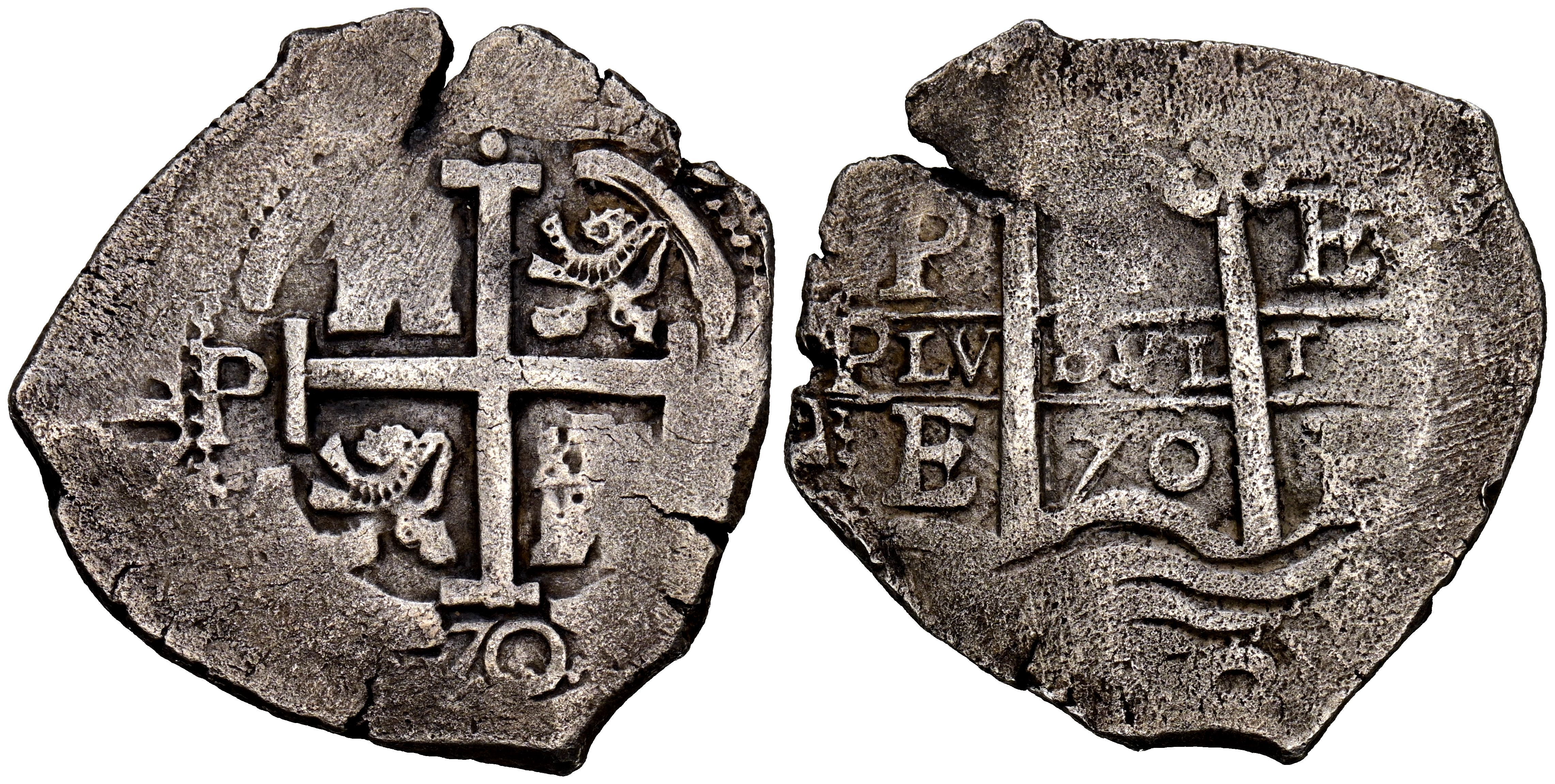 CARLOS II (1665-1700). 4 Reales. (Ar. 13,27g/31mm). 1670. Potosí E. (Cal-2019-513). Doble fecha. MBC. Oxidaciones.