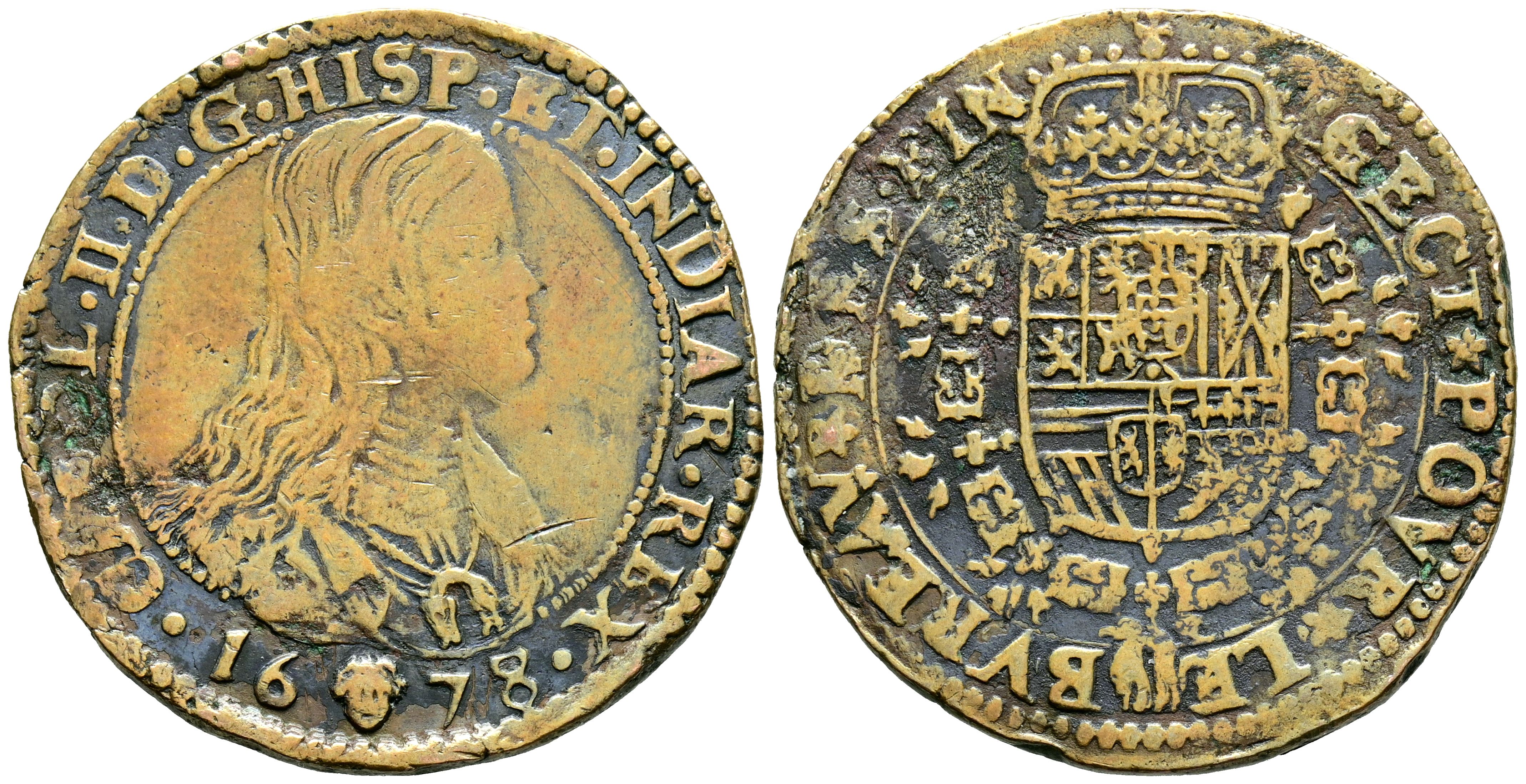 CARLOS II (1665-1700). Jetón. (Ae. 6,35g/30mm). 1678. Bruselas. (Dugniolle 4404). BC+.
