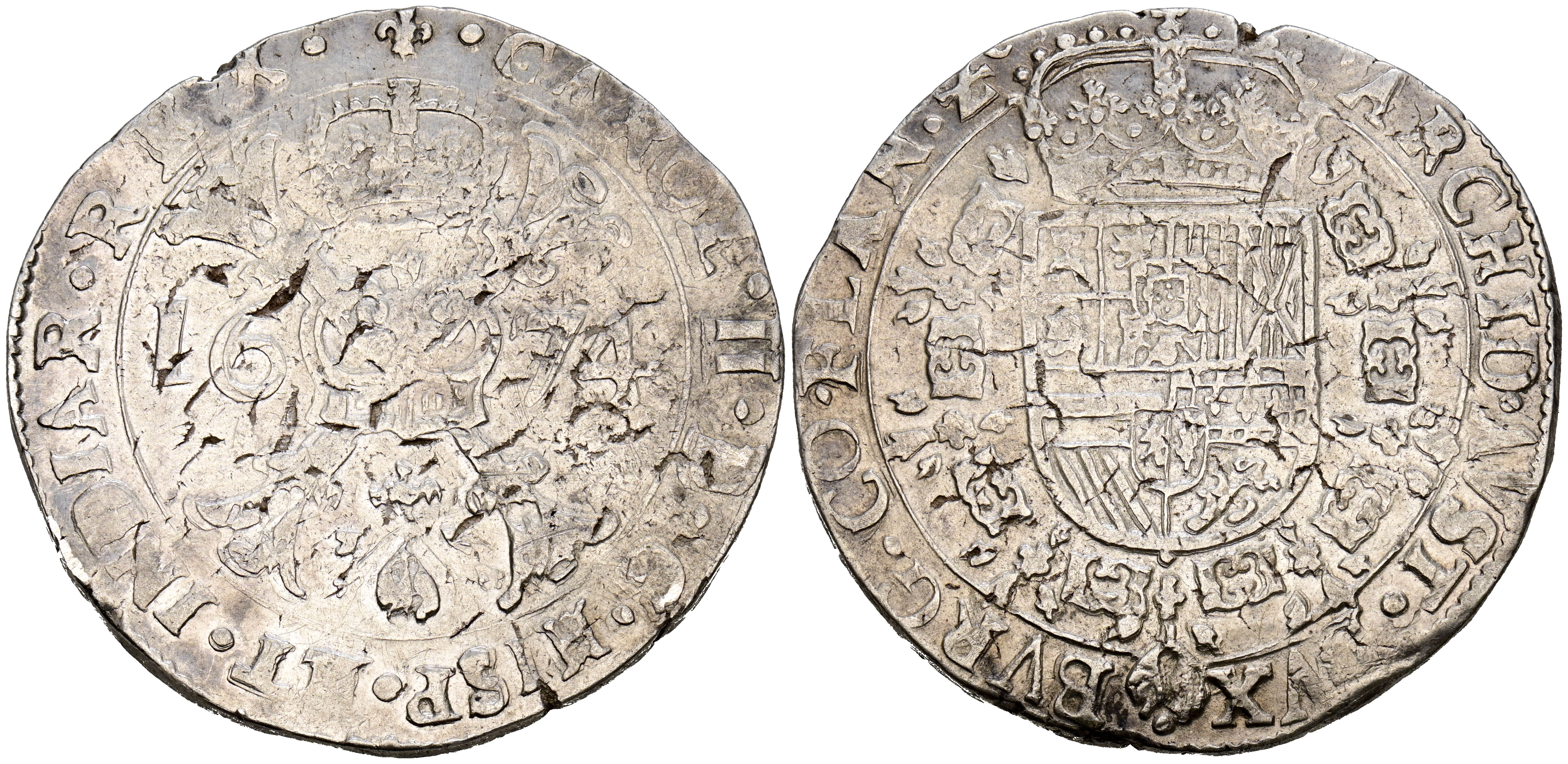 CARLOS II (1665-1700). 1 Patagón. (Ar. 28,03g/44mm). 1674. Brujas. (Vicenti 436). MBC.