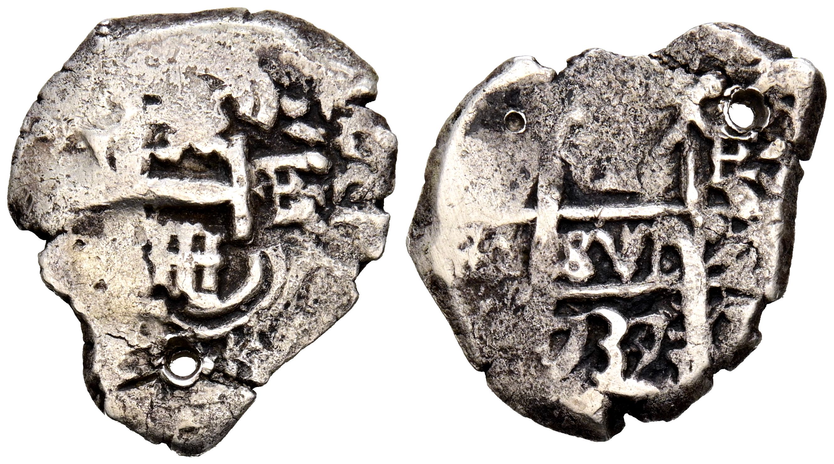 FELIPE V (1700-1746). 1 Real. (Ar. 3,01g/18mm). 1737. Potosí E. (Cal-2019-597). Doble ensayador. BC+/MBC-. Perforación.