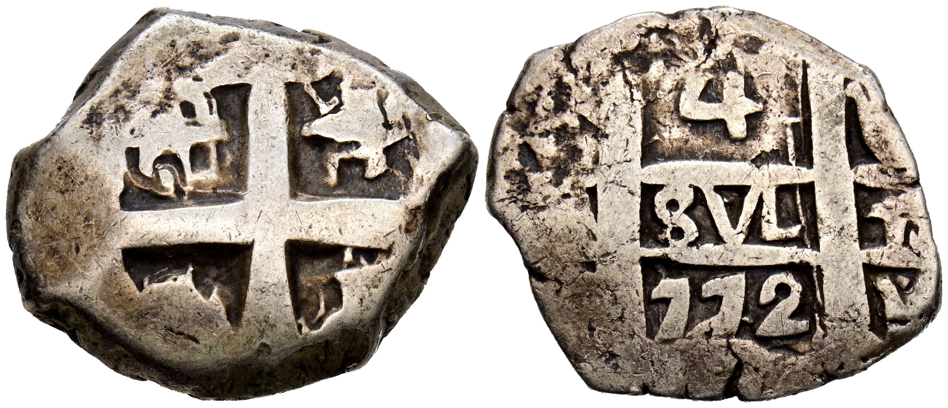 CARLOS III (1759-1788). 4 Reales. (Ar. 13,32g/26mm). 1772. Potosí V-Y. (Cal-2019-918). MBC-. Escasa.