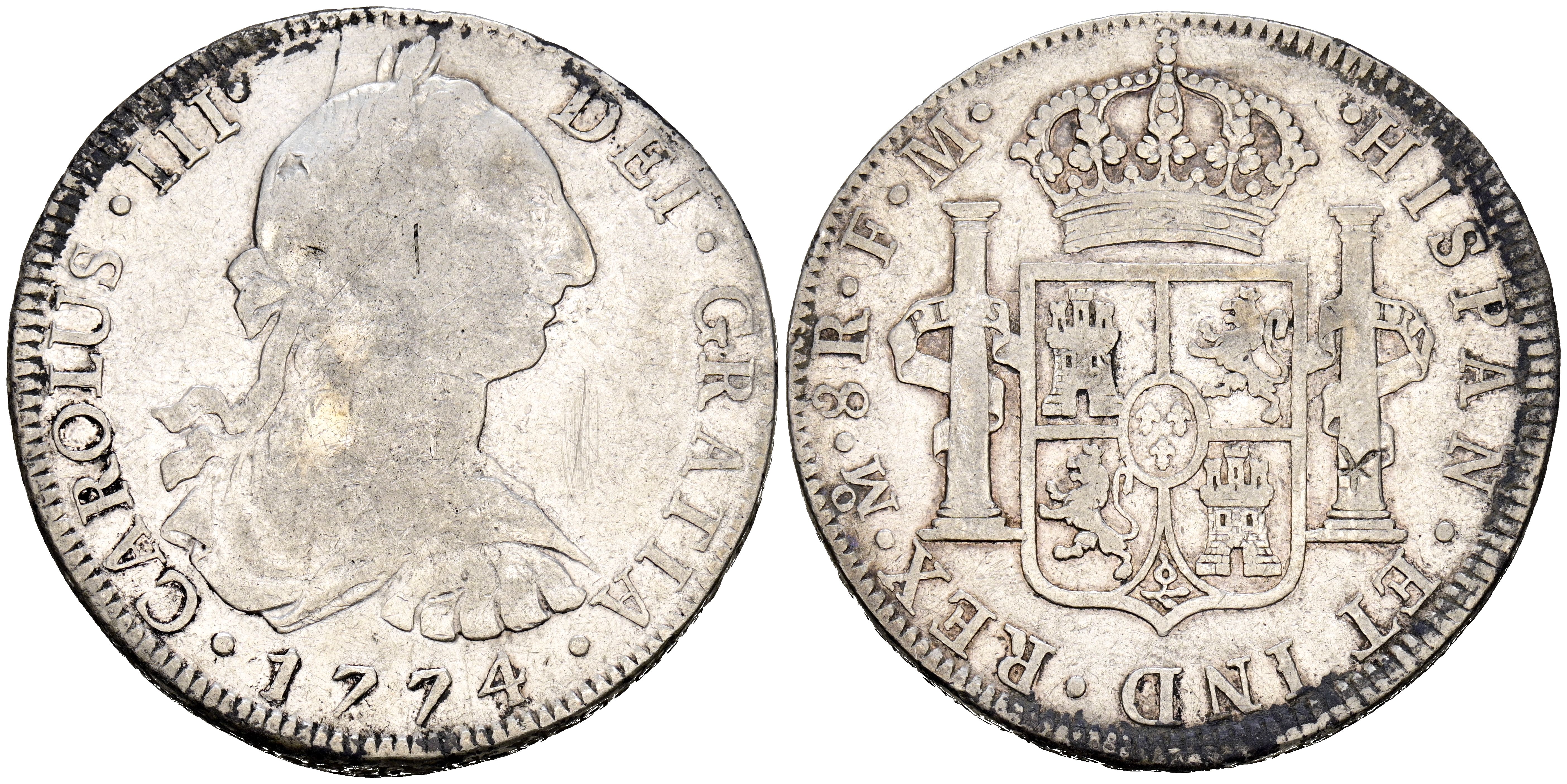 CARLOS III (1759-1788). 8 Reales. (Ar. 26,61g/39mm). 1774. México FM. (Cal-2019-1108). MBC-.