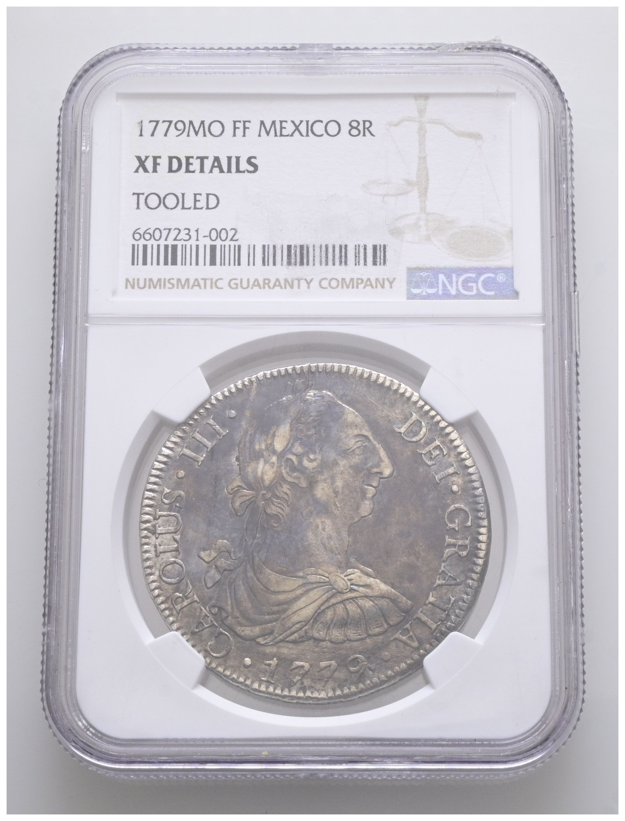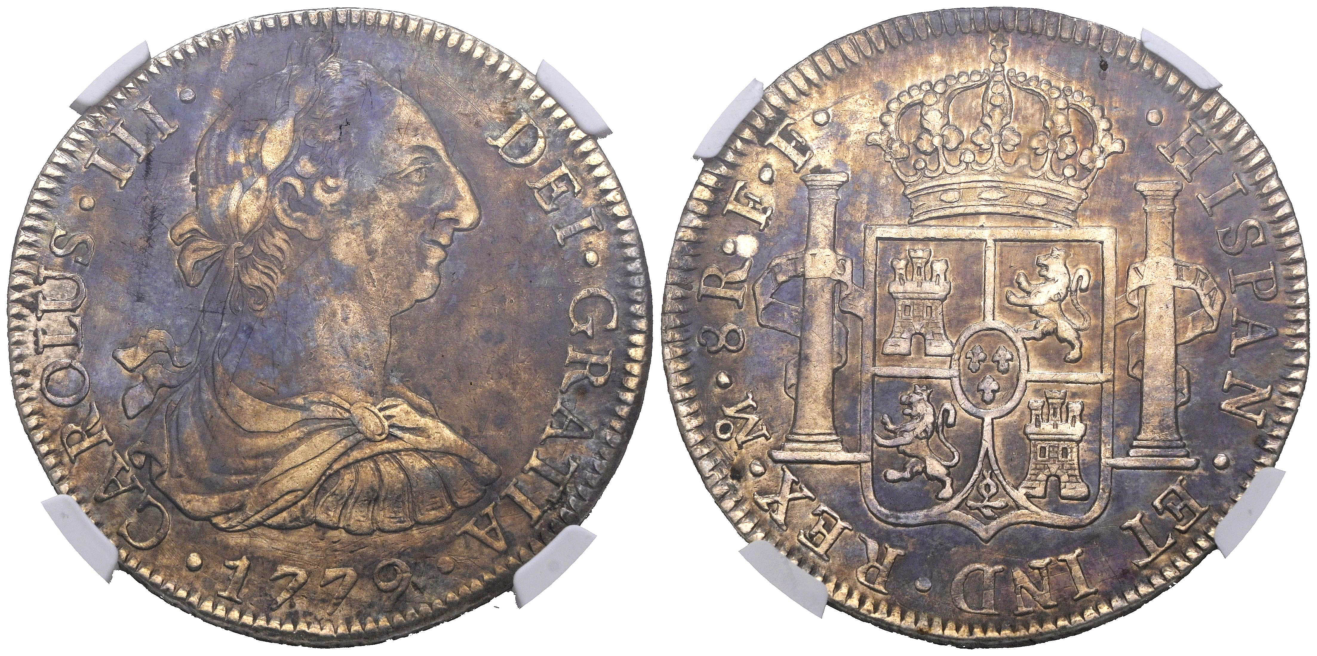 CARLOS III (1759-1788). 8 Reales. (Ar. 27,00g/38mm)*. 1779. México FF. (Cal-2019-1118). Encapsulada por NGC XF Details, Tooled. *Peso y medida teóricos.