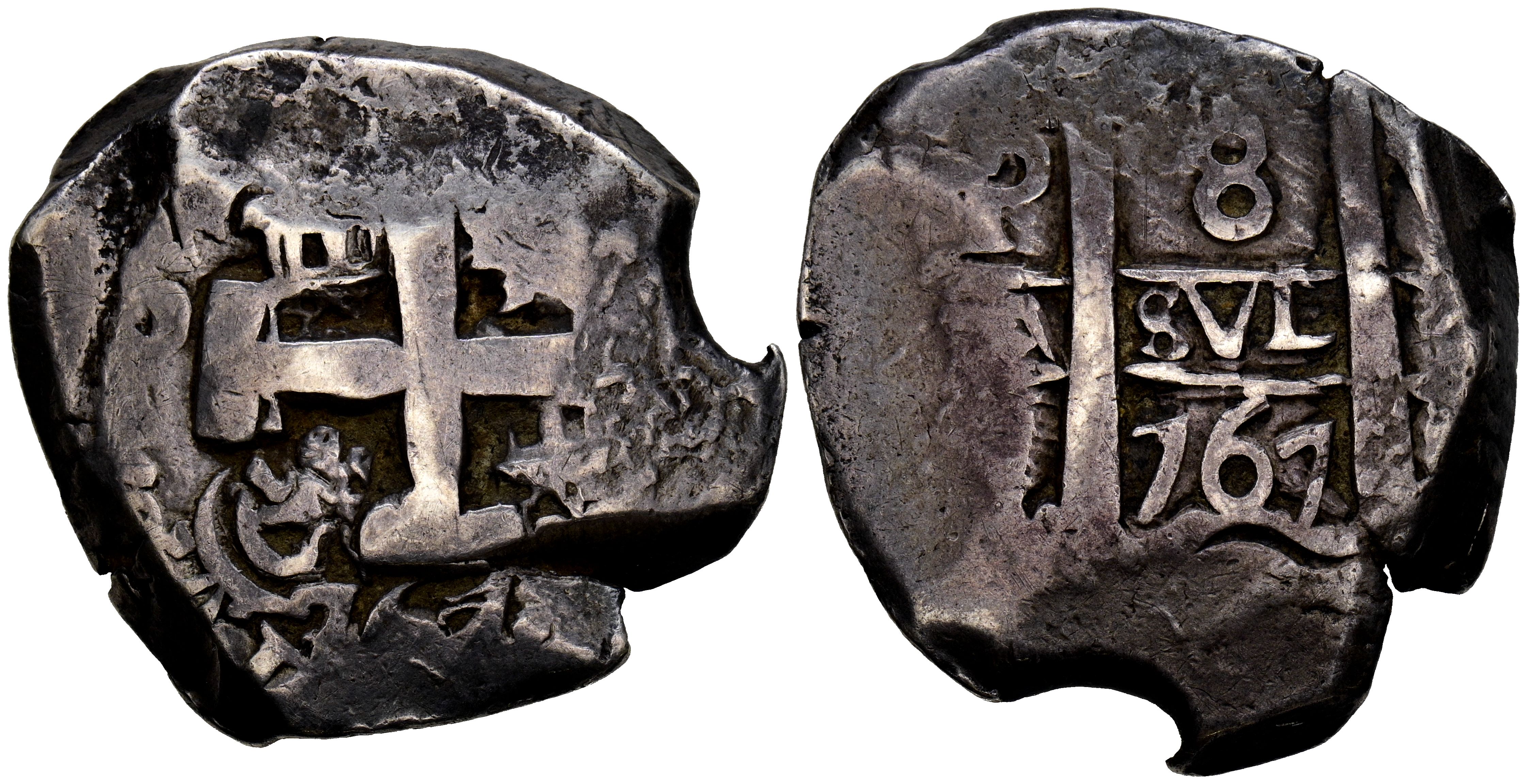 CARLOS III (1759-1788). 8 Reales. (Ar. 26,75g/30mm). 1767. Potosí V-Y. (Cal-2019-1143). Doble fecha. MBC-/MBC.