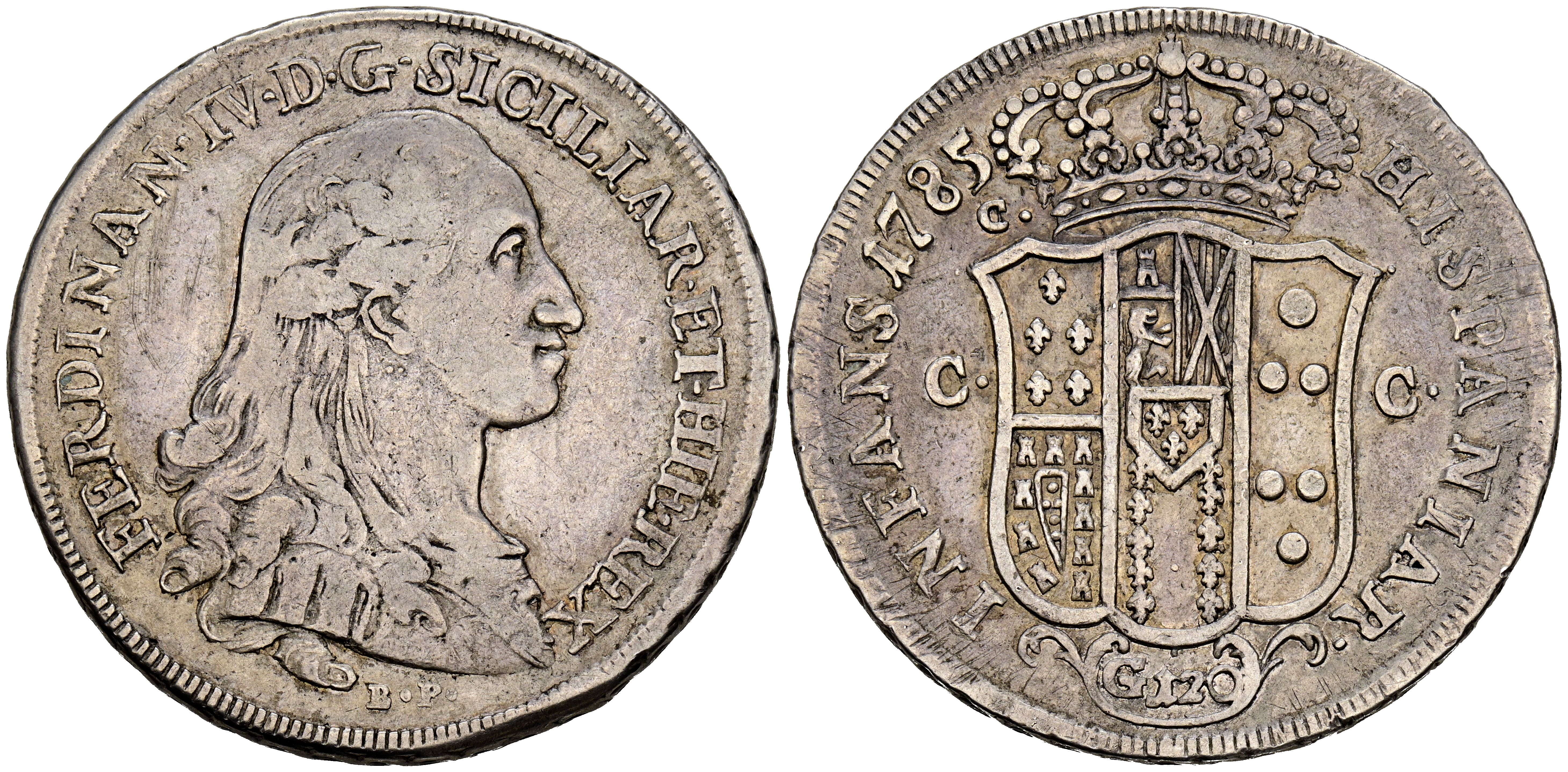 FERNANDO IV DE NÁPOLES, Infante de España y tercer hijo de Carlos III (1759-1816). 120 Grana. (Ar. 27,13g/41mm). 1785. Nápoles BP/ CC-C. (Vicenti 281). MBC.