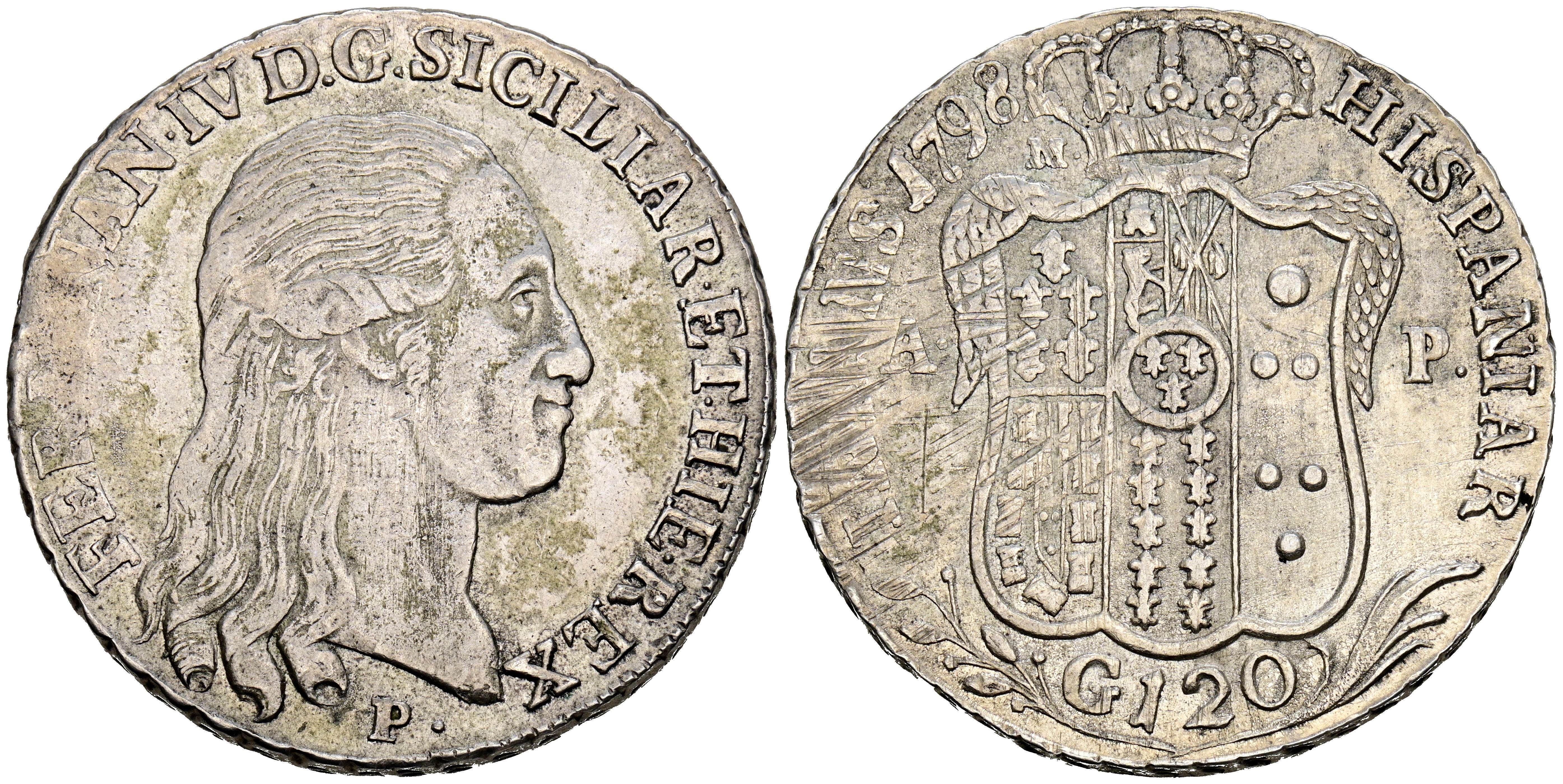 FERNANDO IV (1759-1799). 120 Grana. (Ar. 27,48g/40mm). 1798. Nápoles. (Vicenti 299). MBC+. Escaso en esta bonita calidad.