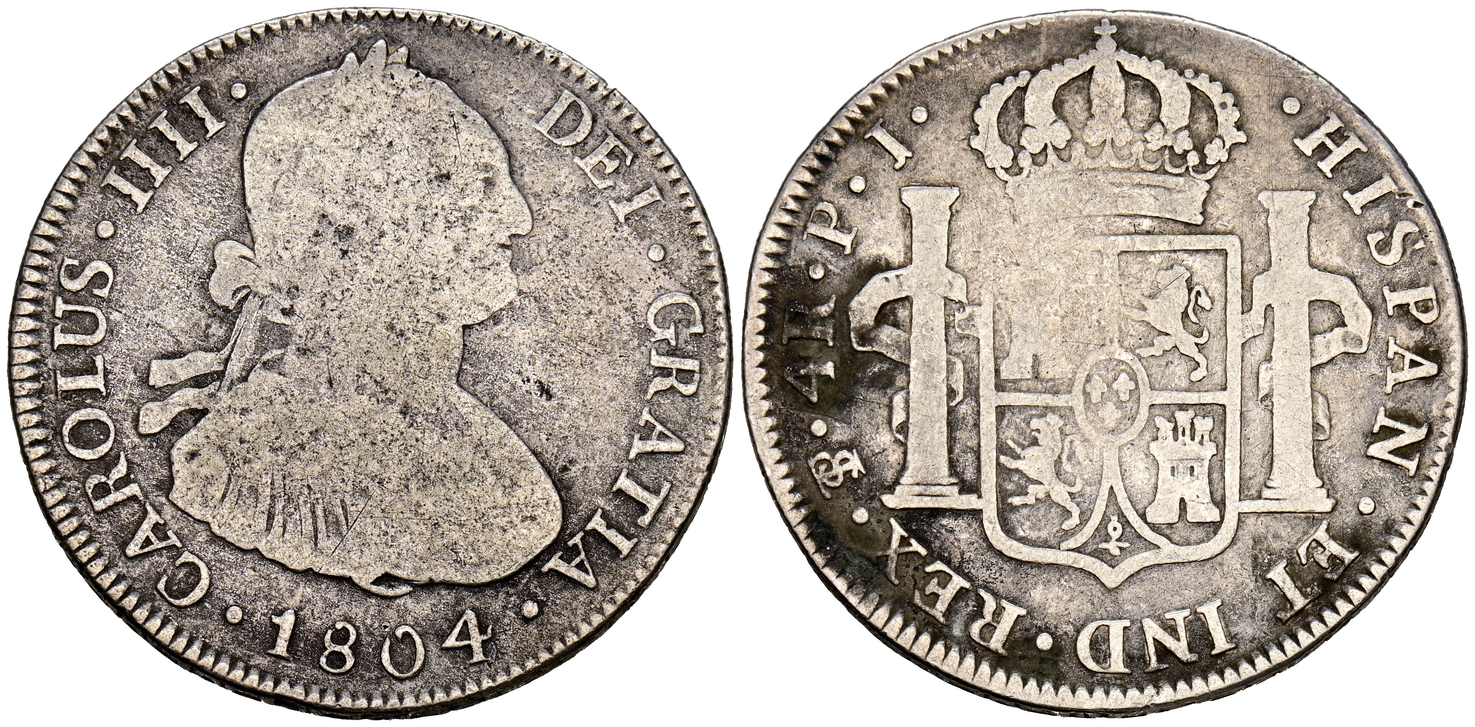 CARLOS IV (1788-1808). 4 Reales. (Ar. 12,91g/34mm). 1804. Potosí PJ. (Cal-2019-839). BC+.