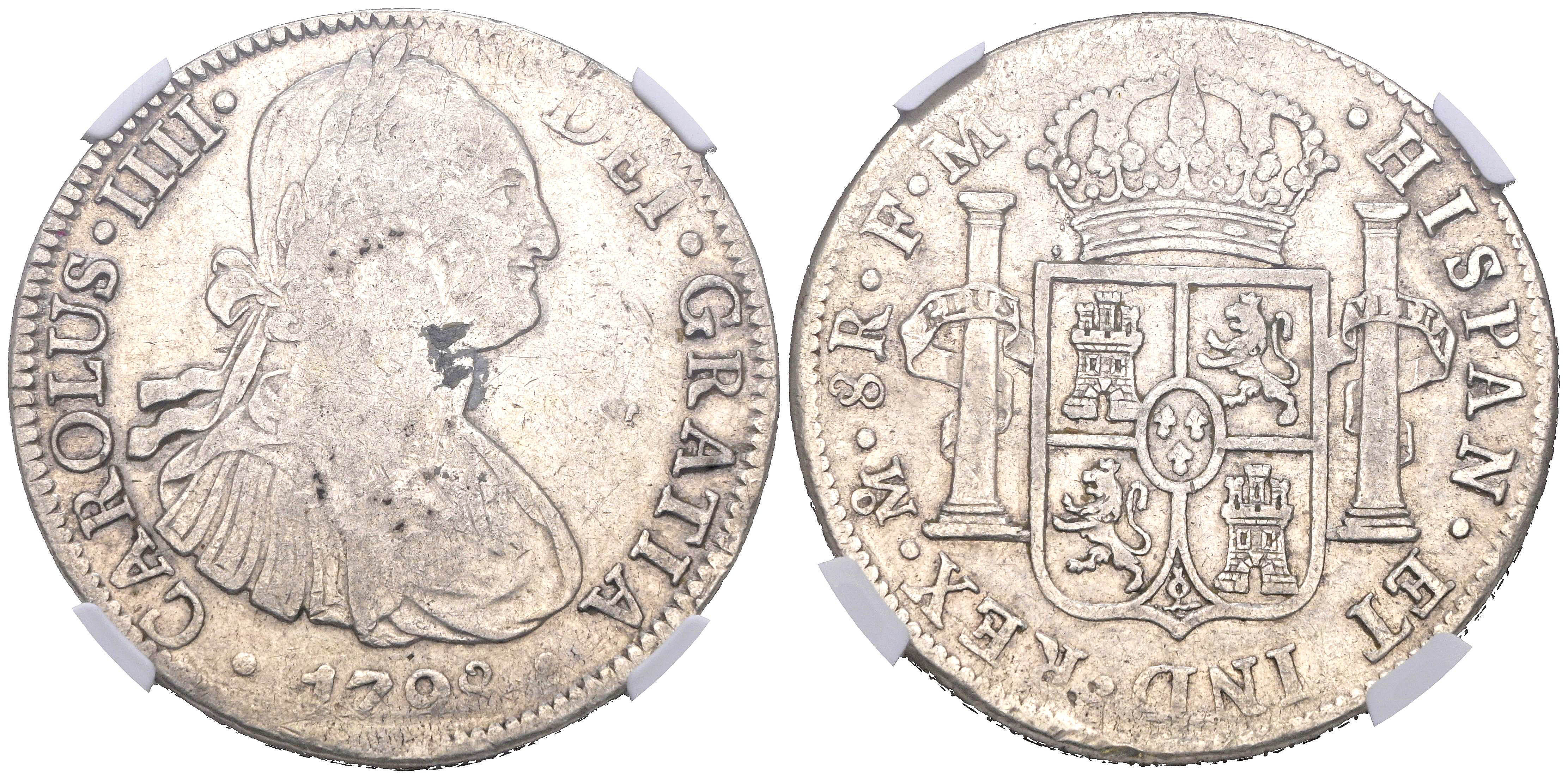 CARLOS IV (1788-1808). 8 Reales. (Ar. 27,00g/39mm)*. 1798. México FM. (Cal-2019-961). Encapsulado por NGC VF Details, Spot Removals. *Peso y medidas teóricos.