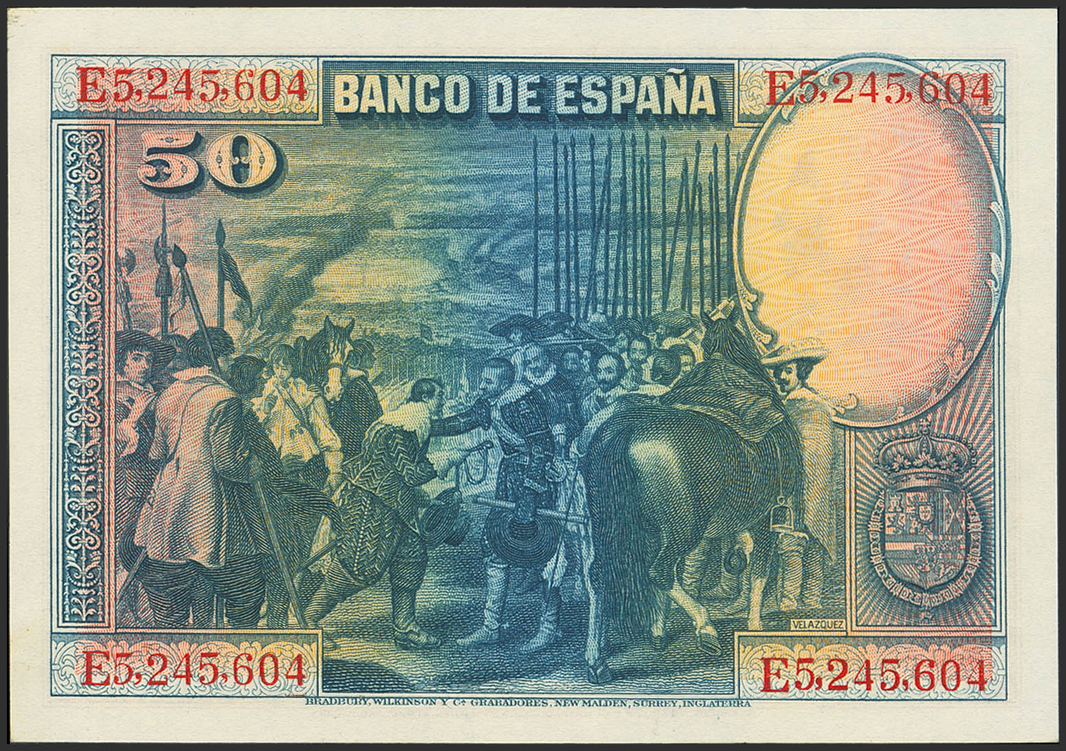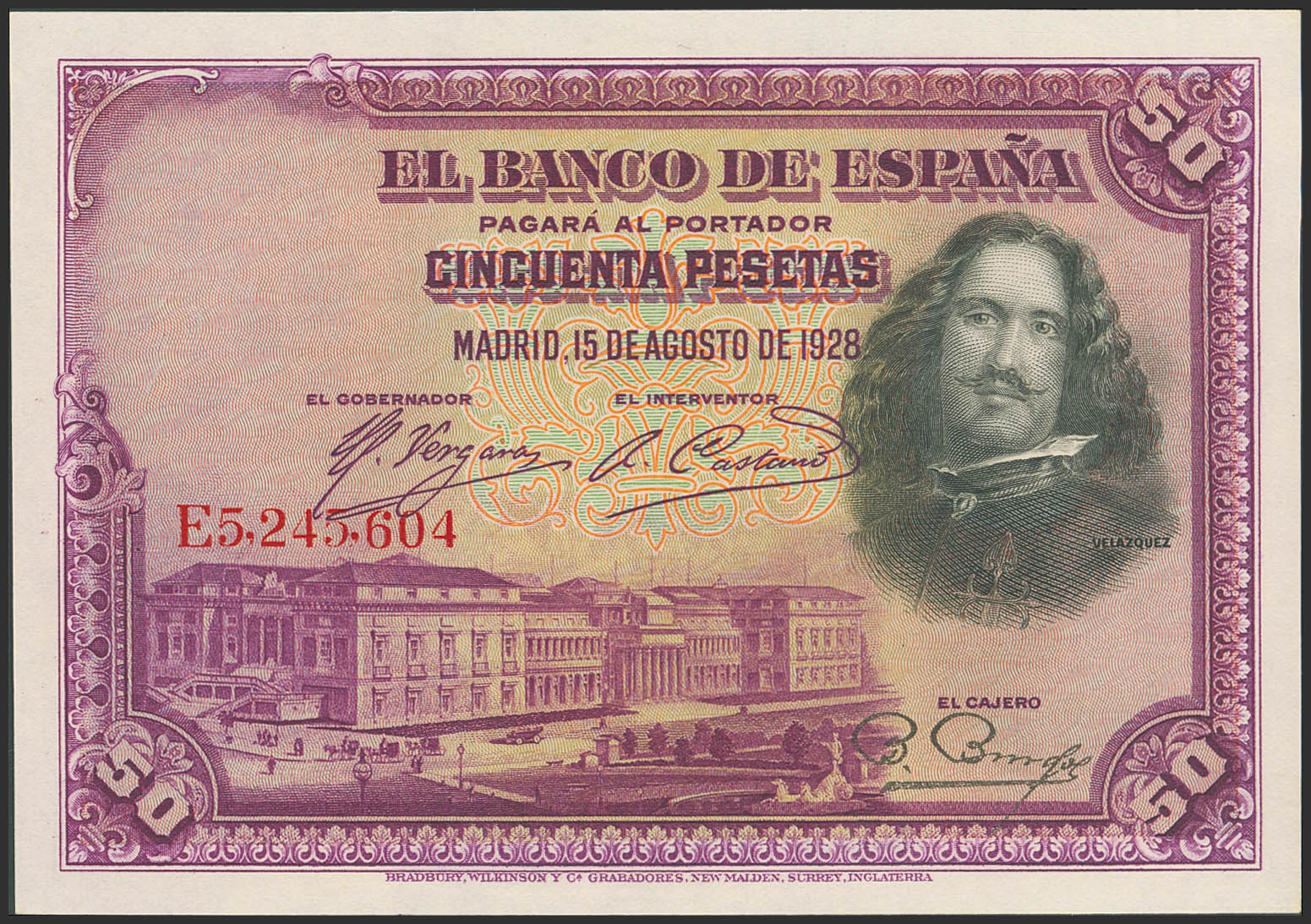 50 Pesetas. 15 de Agosto de 1928. Serie E. (Edifil 2021: 354). Apresto original. SC.