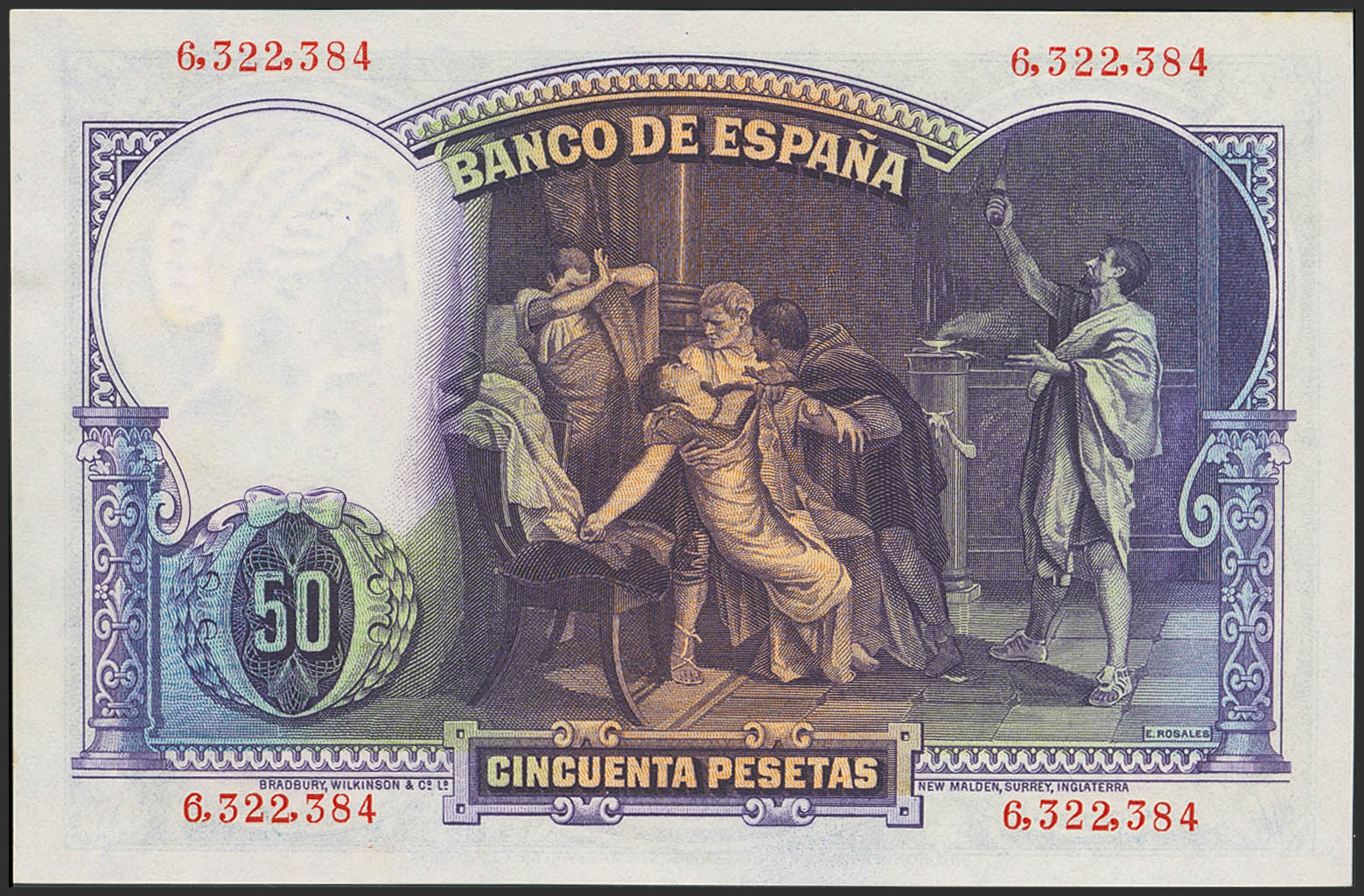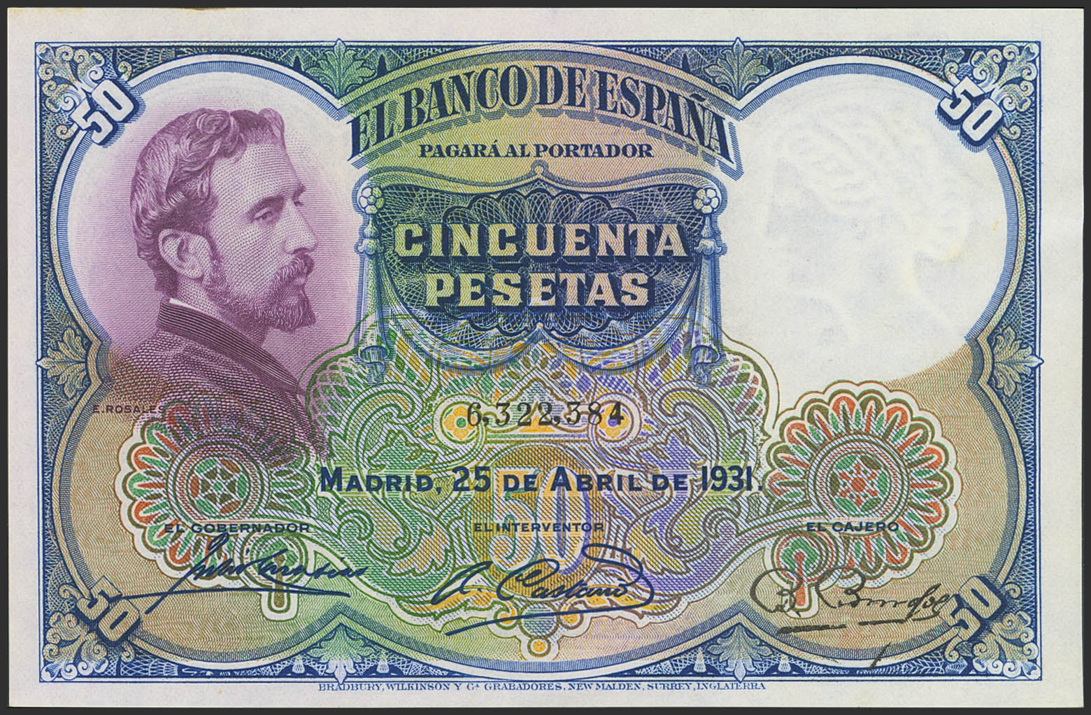 50 Pesetas. 25 de Abril de 1931. Sin Serie. (Edifil 2023: 359). Conserva gran parte del apresto original. EBC+++.