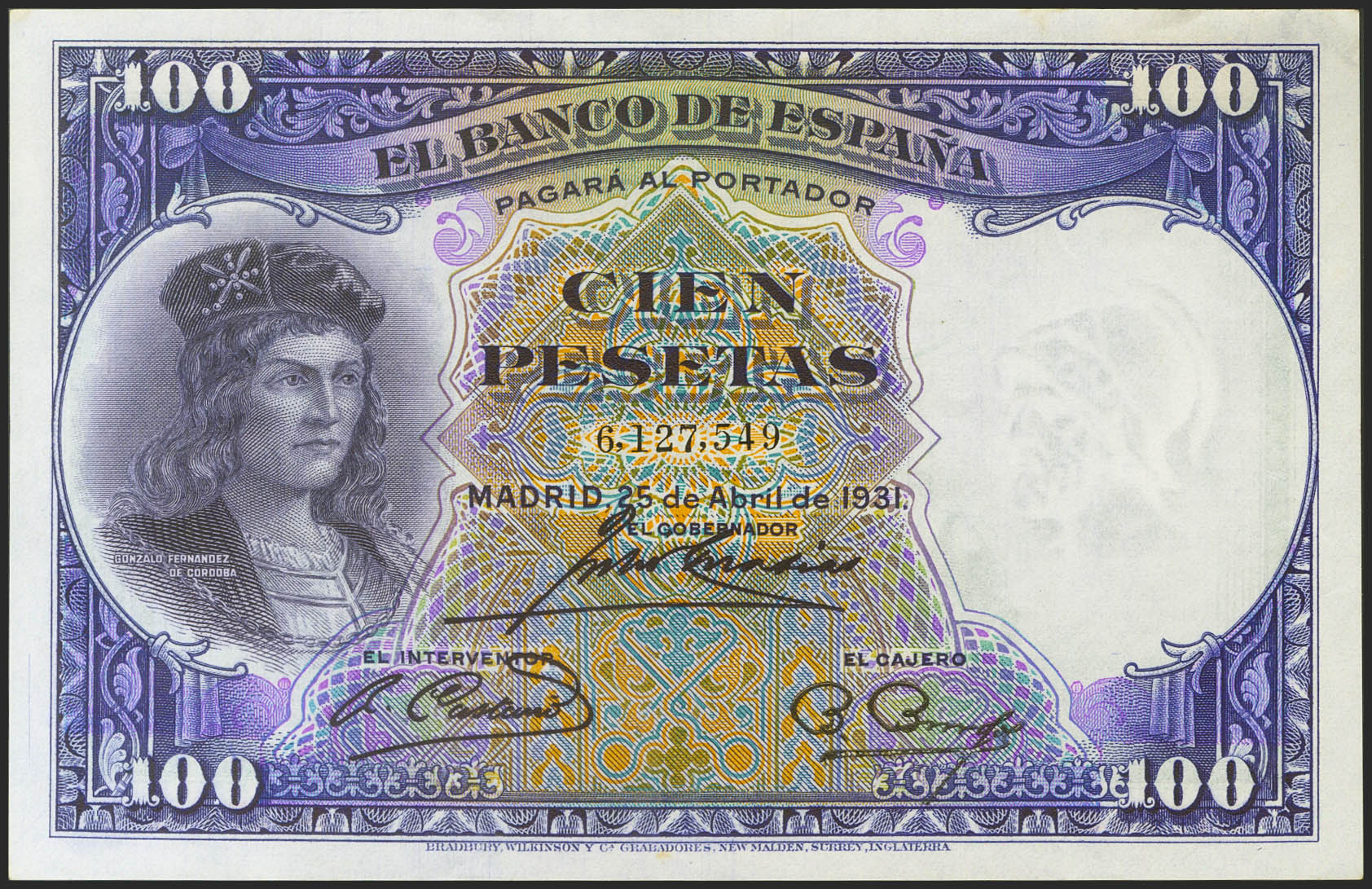 100 Pesetas. 25 de Abril de 1931. Sin serie. (Edifil 2017: 360). Conserva todo su apresto original. SC-.