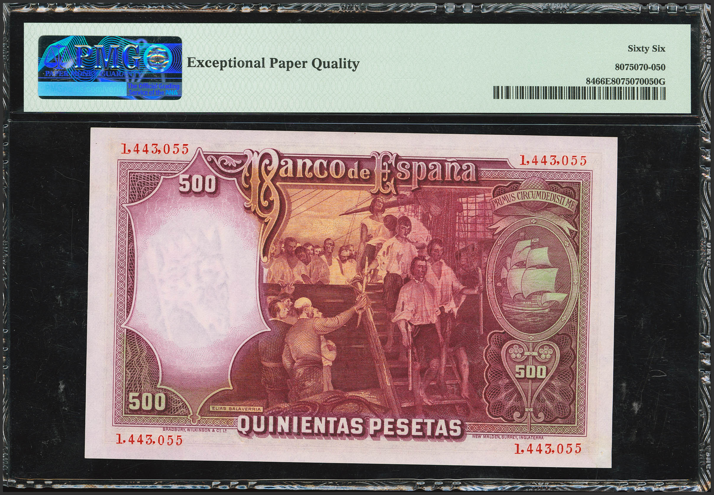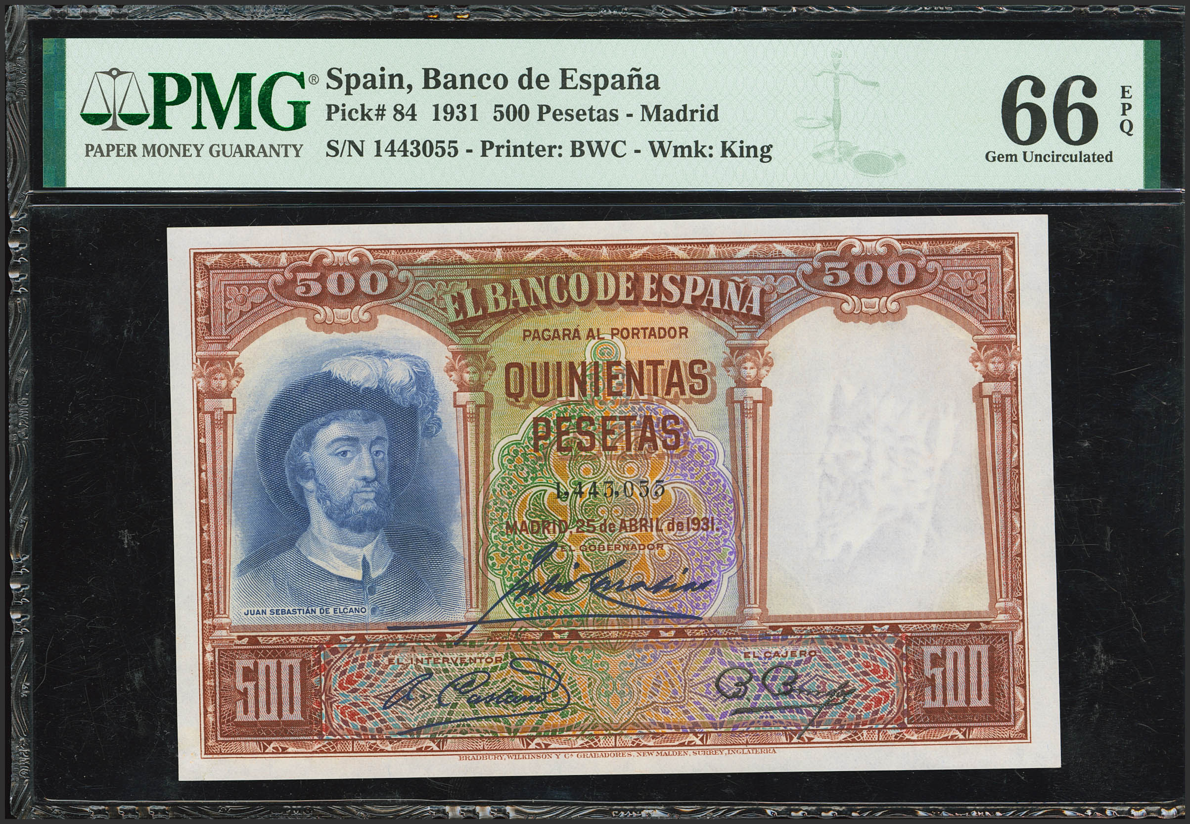 500 Pesetas. 25 de Abril de 1931. Sin serie. (Edifil 2023: 361, Pick: 84). Raro en esta excepcional calidad, apresto original. SC. Encapsulado PMG66EPQ.