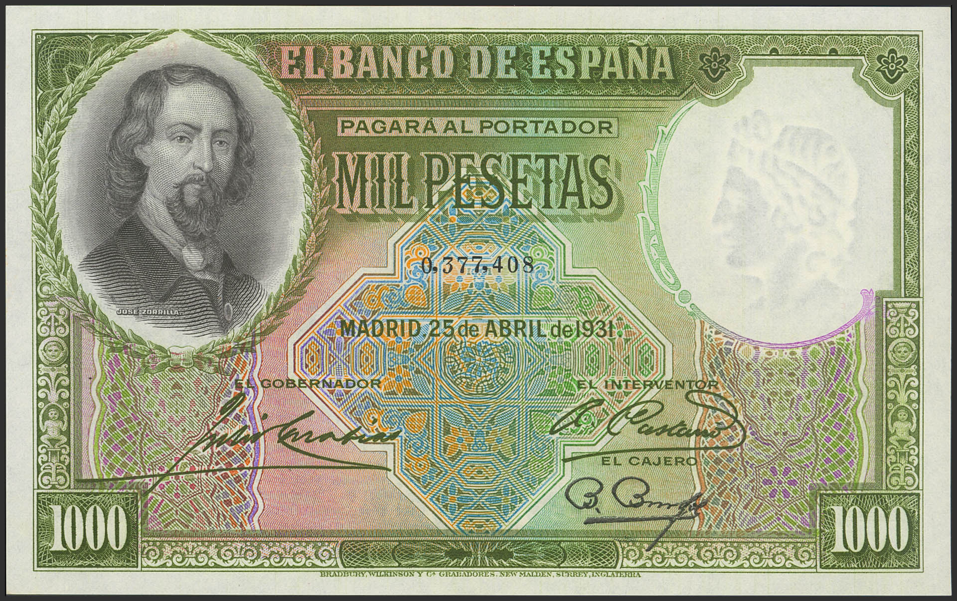 1000 Pesetas. 25 de Abril de 1931. Sin serie. (Edifil 2023: 362). Apresto original. SC.
