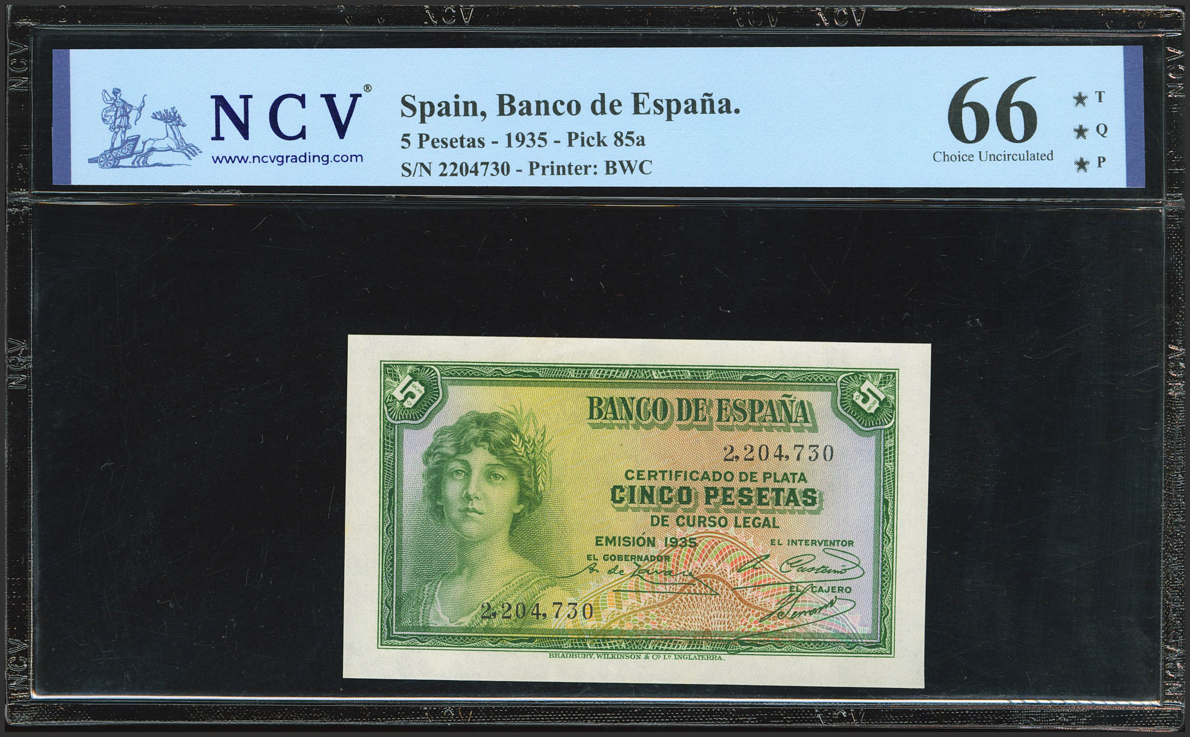 5 Pesetas. 1935. Certificado de Plata. Sin serie. (Edifil 2023: 363, Pick: 85a). Apresto original. SC. Encapsulado NCV66TQP.