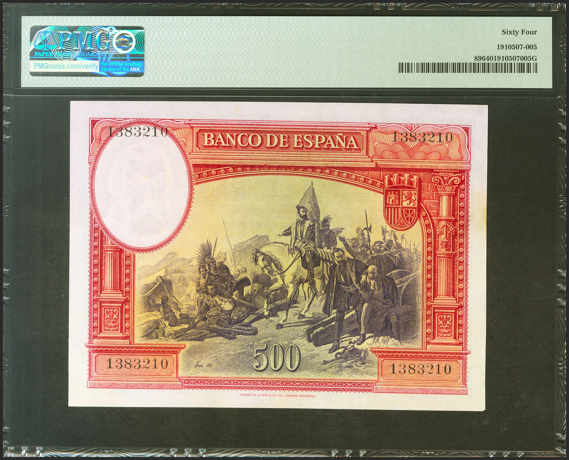 500 Pesetas. 7 de Enero de 1935. Sin serie. (Edifil 2021: 365, Pick: 89). SC. Encapsulado PMG64.