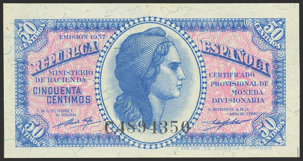 50 Céntimos. 1937. Serie C. (Edifil 2023: 391a). Apresto original. SC.