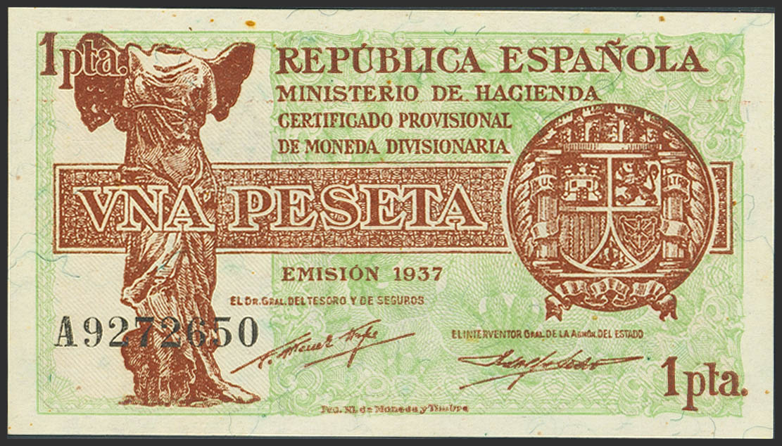 1 Peseta. 1937. Serie A. (Edifil 2023: 392). Apresto original, típicos puntitos del tiempo. SC-.