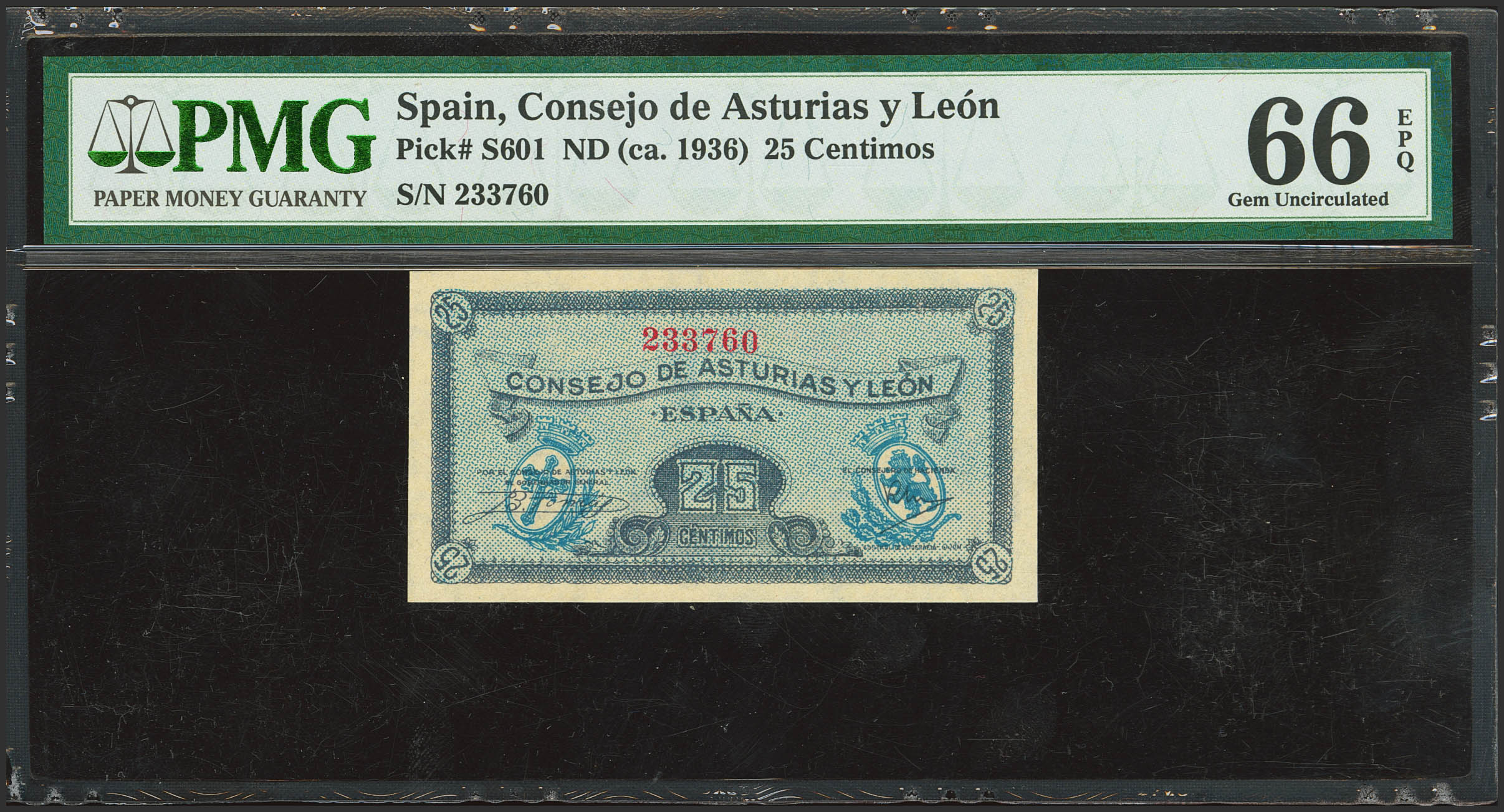 25 Céntimos. 1937. Asturias y León. Sin serie. (Edifil 2023: 394, Pick: S601). Apresto original. SC. Encapsulado PMG66EPQ.