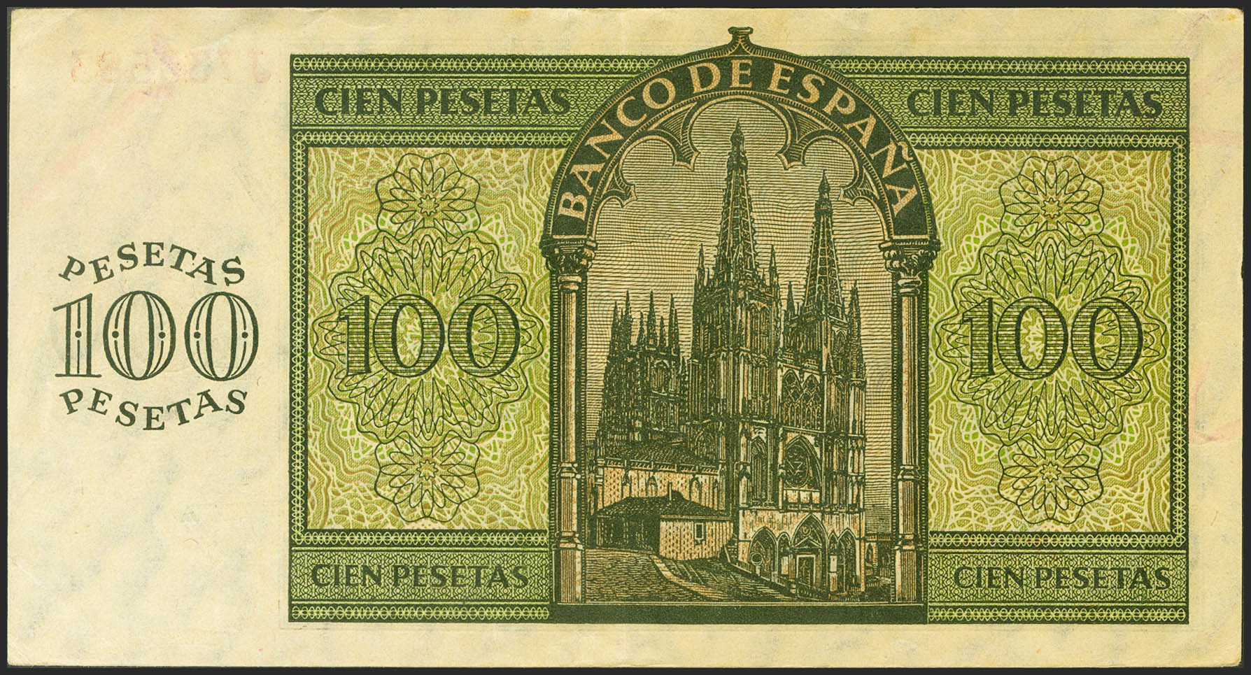 100 Pesetas. 21 de Noviembre de 1936. Serie J. (Edifil 2021: 421a). Conserva gran parte del apresto original. EBC.