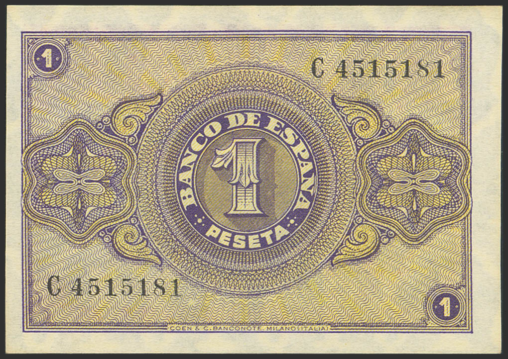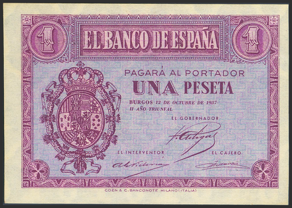 1 Peseta. 12 de Octubre de 1937. Serie C. (Edifil 2023: 425a). Apresto original. SC.