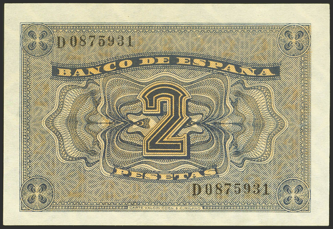 2 Pesetas. 30 de Abril de 1938. Serie D. (Edifil 2021: 429a). Apresto original. SC.