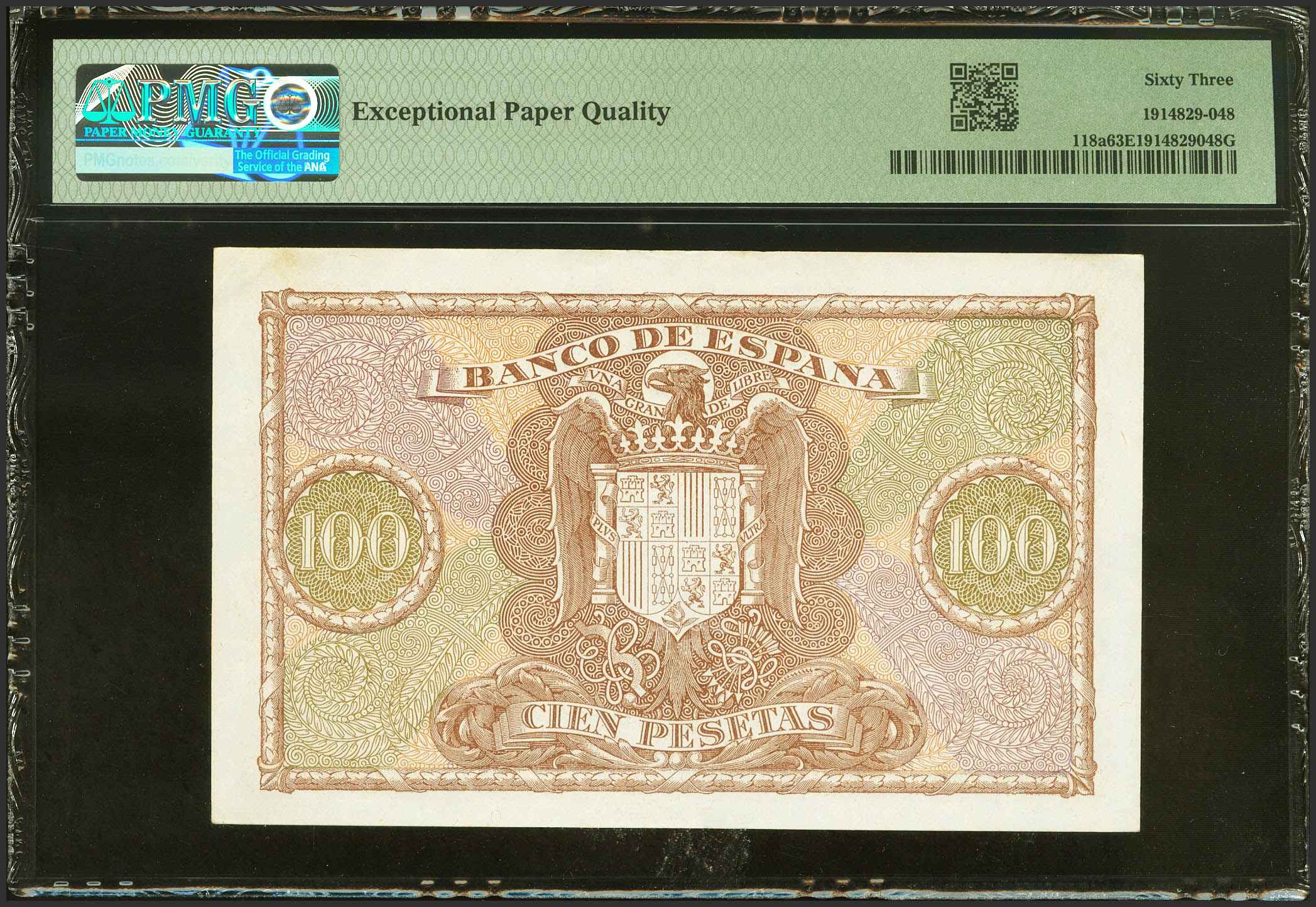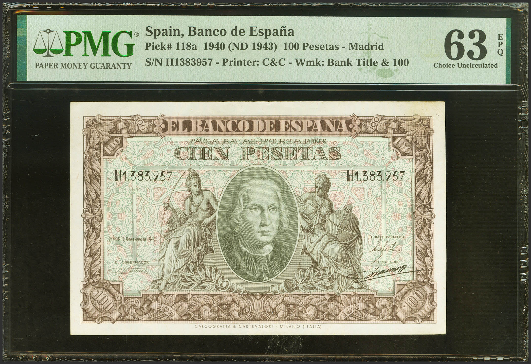 100 Pesetas. 9 de Enero de 1940. Serie H. (Edifil 2021: 438a, Pick: 118a). Apresto original. SC. Encapsulado PMG63EPQ.