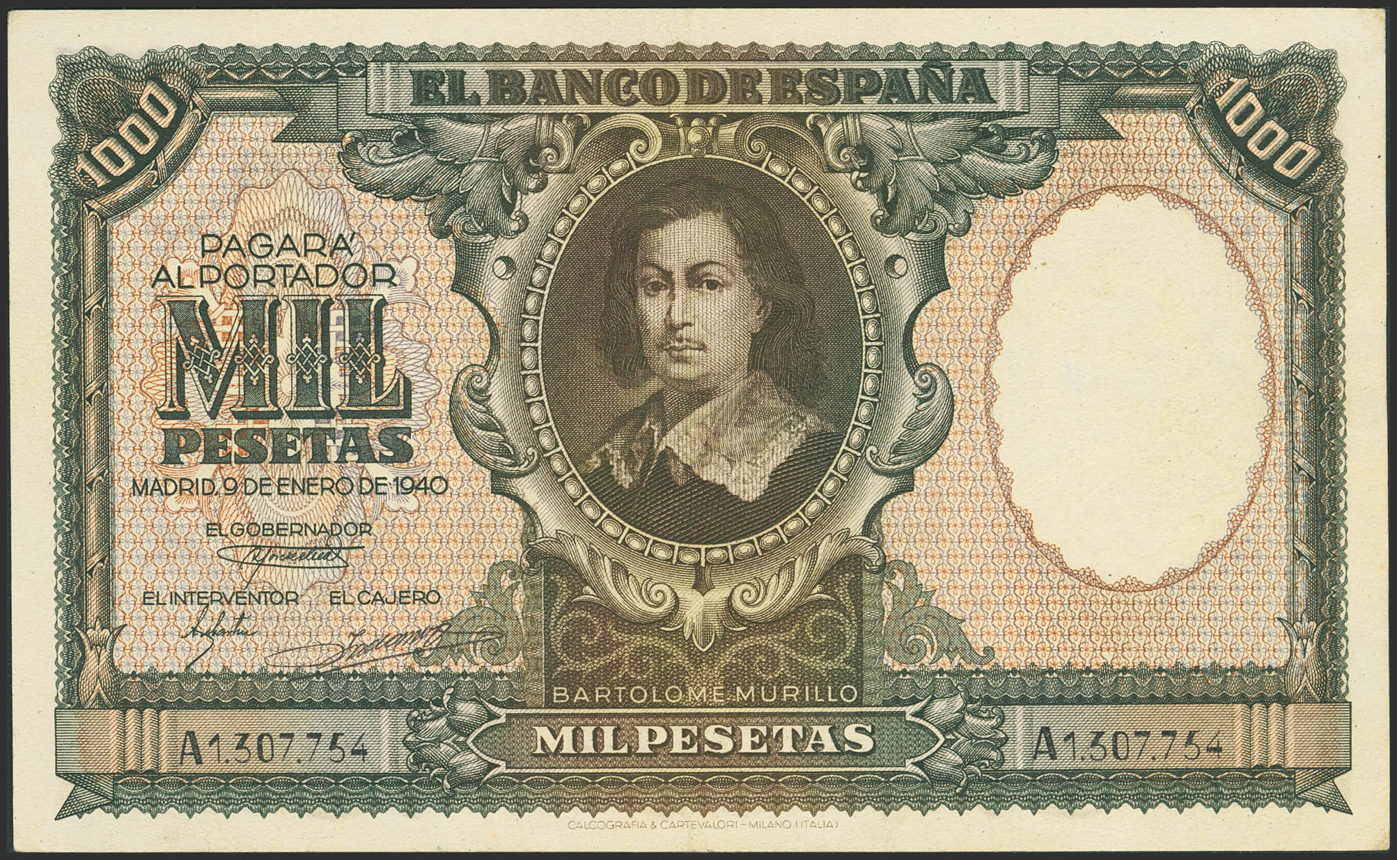 1000 Pesetas. 9 de Enero de 1940. Serie A. (Edifil 2023: 440). EBC-.